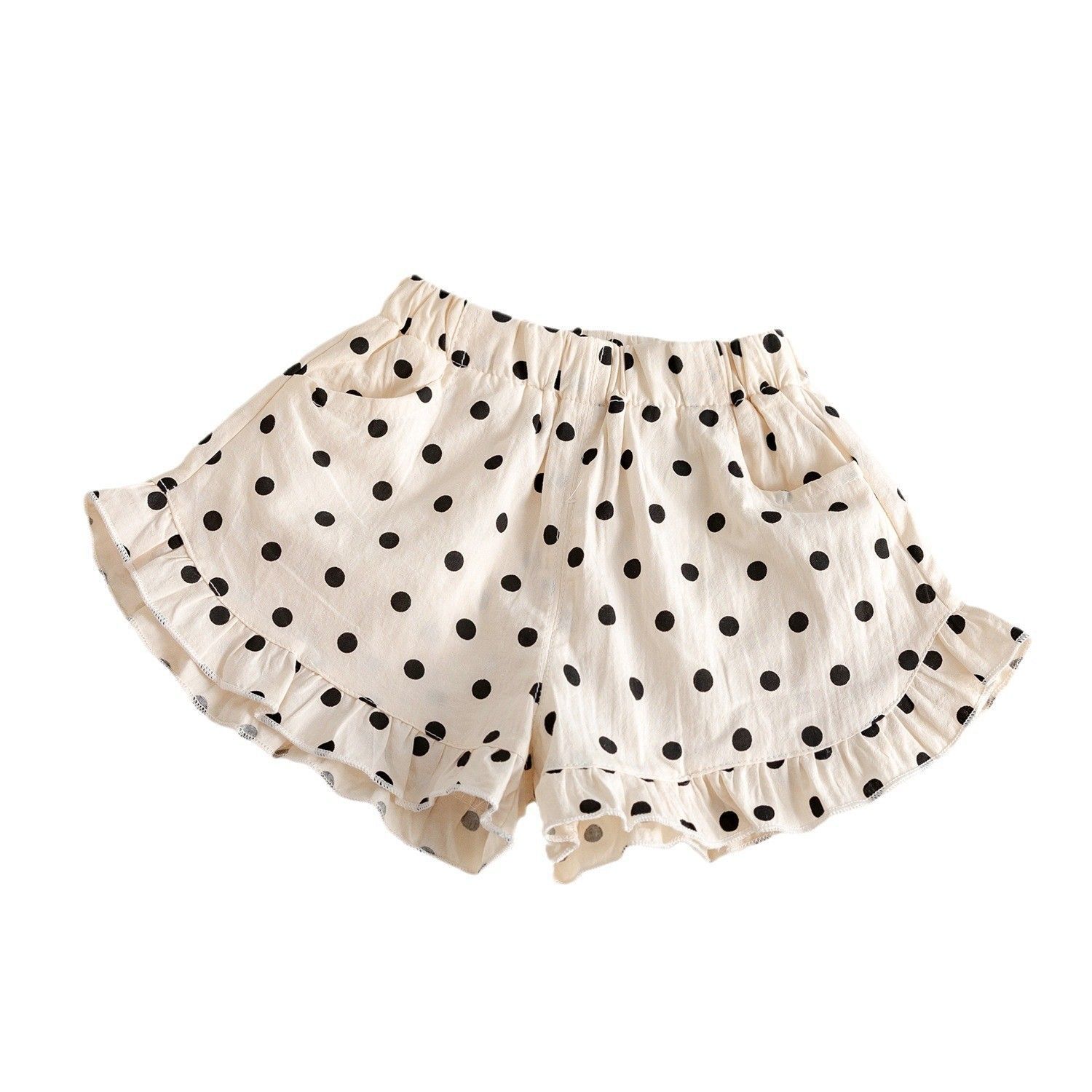 여자 반바지 2025 여름 새로운 한국 스타일 서양식 아기 소녀 얇은 레이스 외부 착용 어린이 폴로 닷 캐주얼 바지