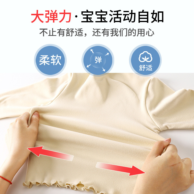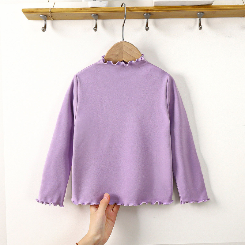 아기의 하이 칼라 봄과 가을 솔리드 컬러 올 매치 웨스턴 스타일 티셔츠 어린이 신식 탑 걸스 아우터 웨어 귀 롱 슬리브 베이스