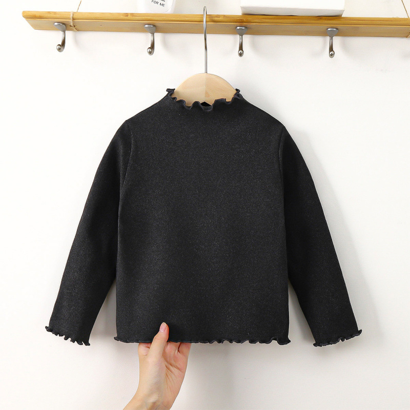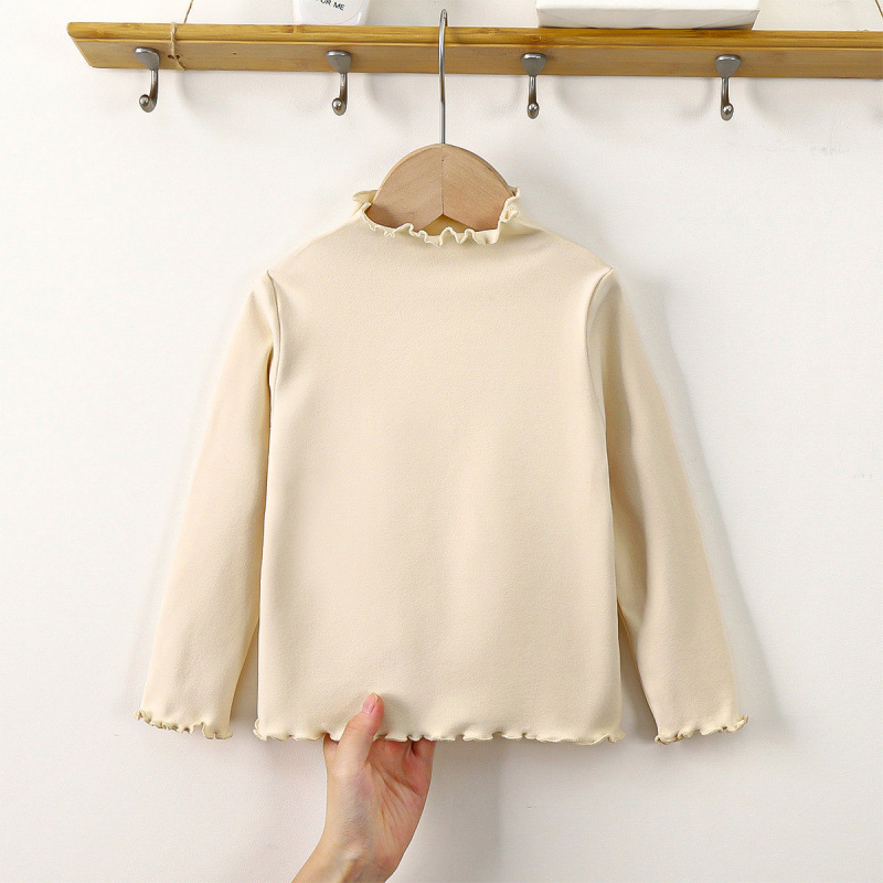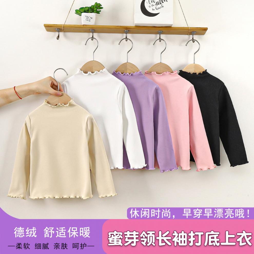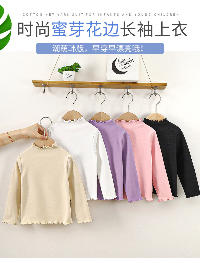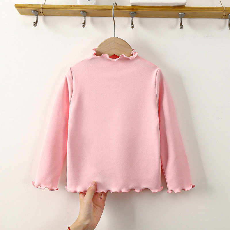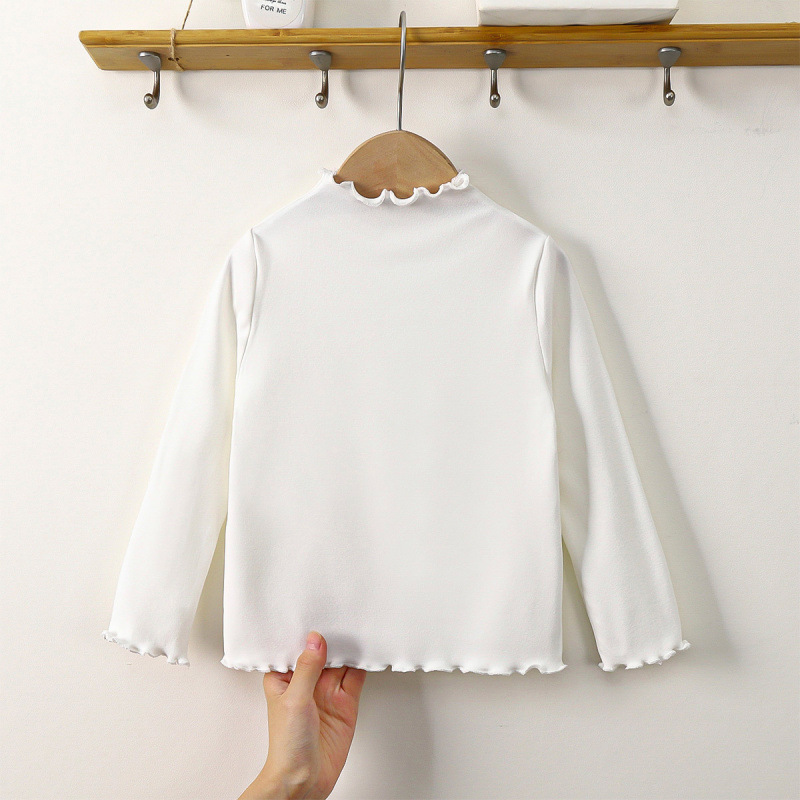 아기의 하이 칼라 봄과 가을 솔리드 컬러 올 매치 웨스턴 스타일 티셔츠 어린이 신식 탑 걸스 아우터 웨어 귀 롱 슬리브 베이스스토어 가기