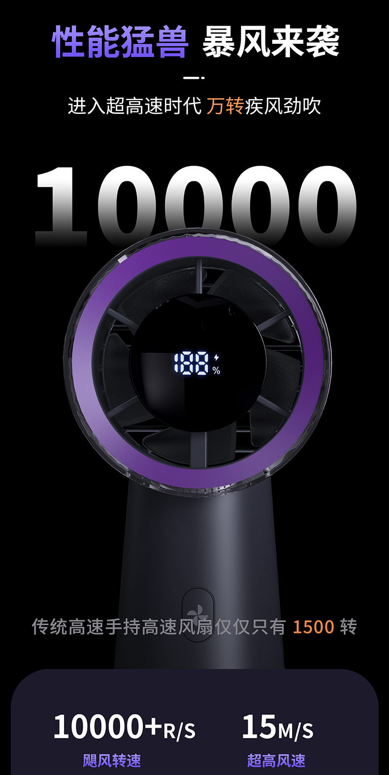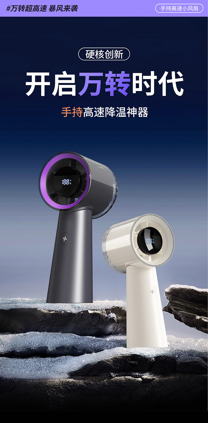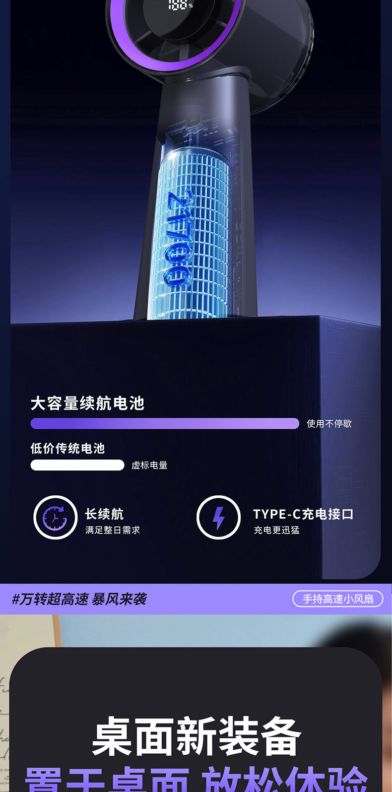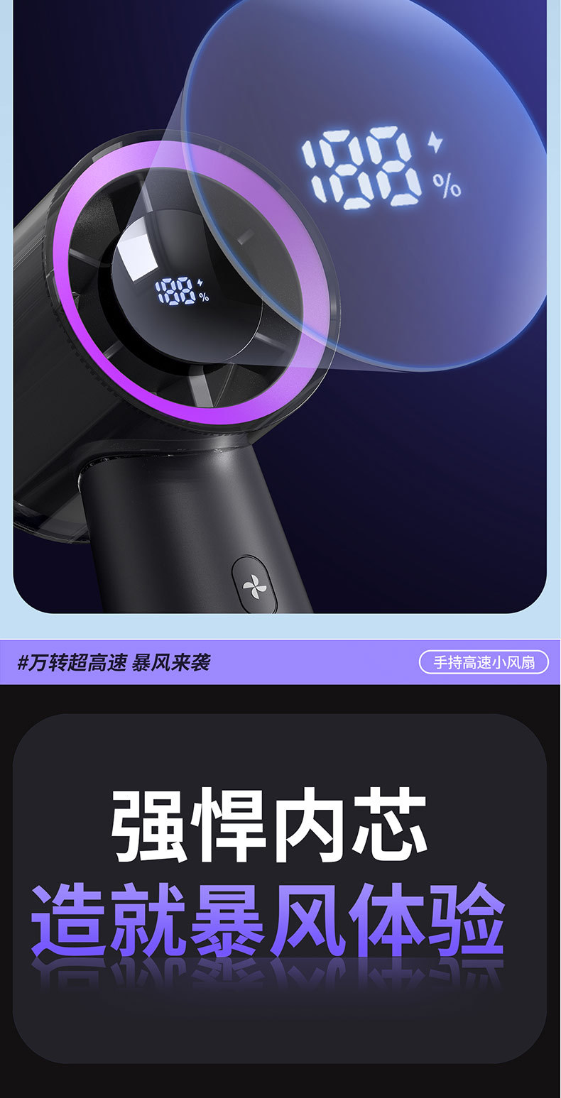 2025 새로운 고속 디지털 디스플레이 휴대용 팬 데스크탑 이중 사용 소형 팬 휴대용 미니 터빈 고속 바람