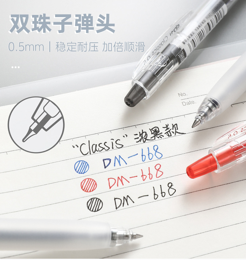 동미 668 클래식 프레스 젤 펜 간단한 투명 높은 색상 값 더블 구슬 CS 두꺼운 블랙 빠른 드라이 브러시 테스트 펜