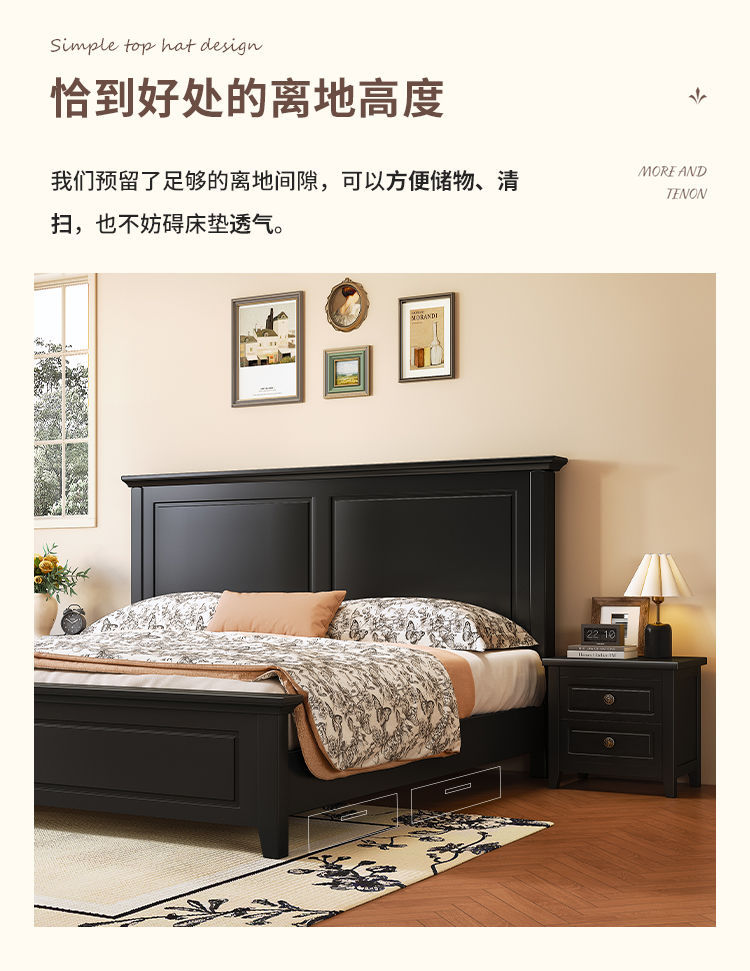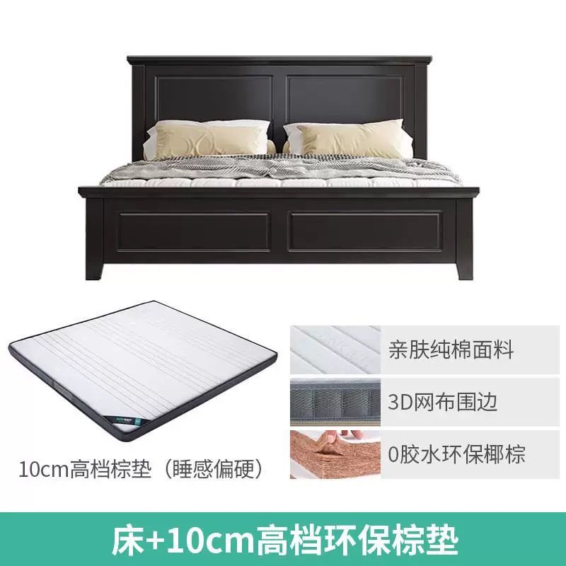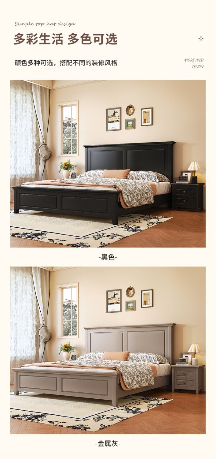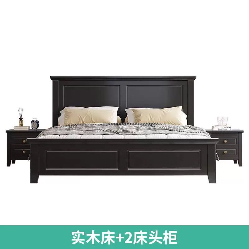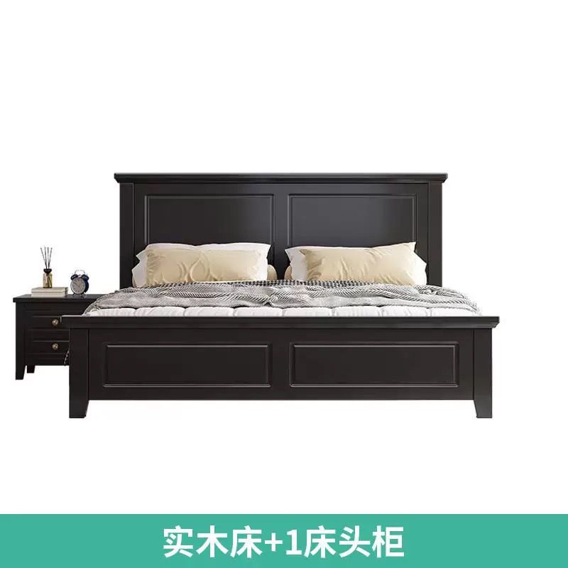 미국 스타일의 단단한 나무 침대 블랙 1.2 m 북유럽 침실 더블 침대 1.8 m 현대 간단한 복고풍 저장 공주 침대스토어 가기