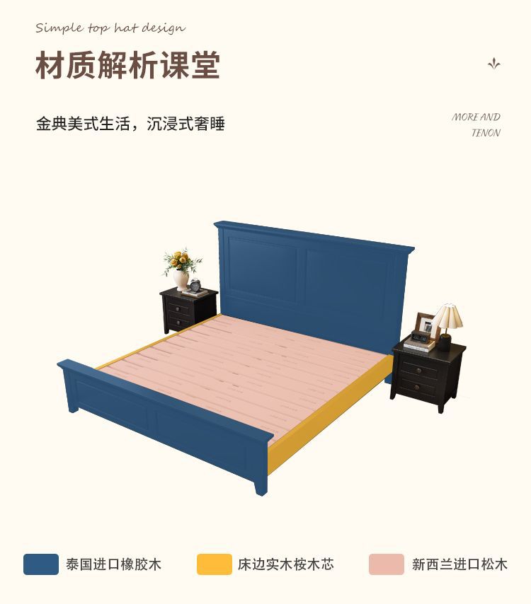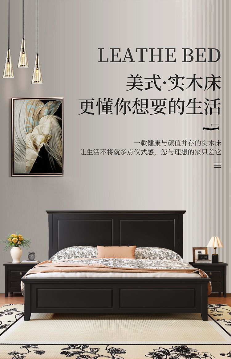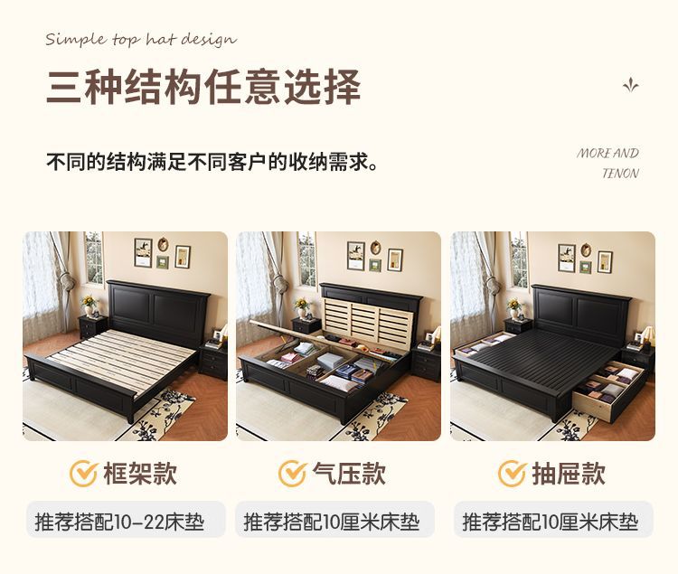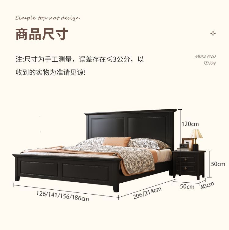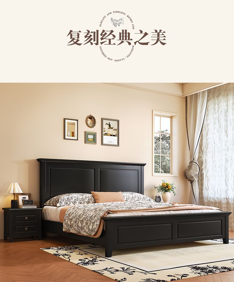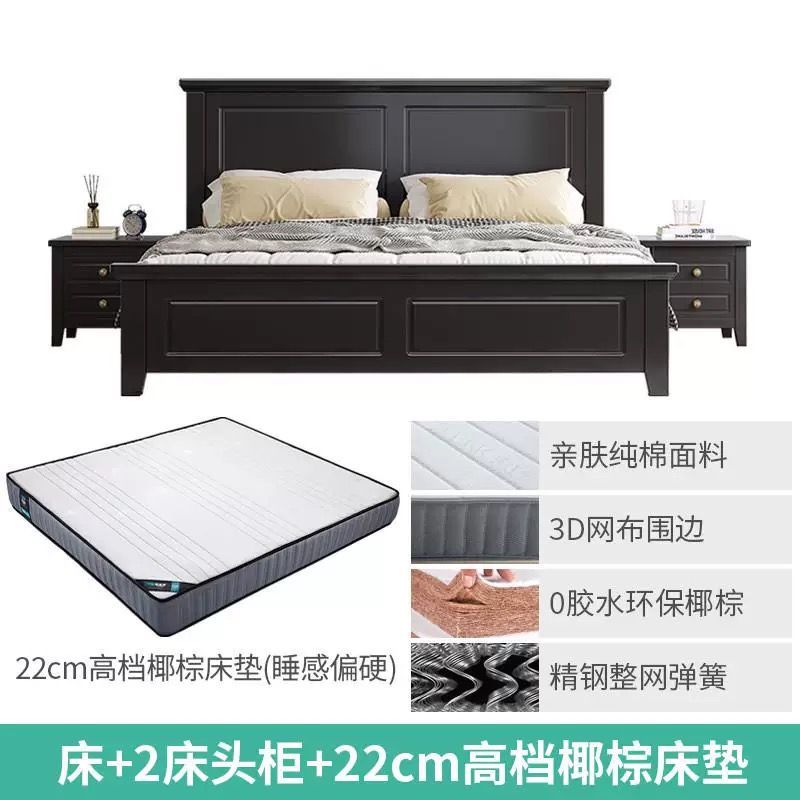 미국 스타일의 단단한 나무 침대 블랙 1.2 m 북유럽 침실 더블 침대 1.8 m 현대 간단한 복고풍 저장 공주 침대스토어 가기