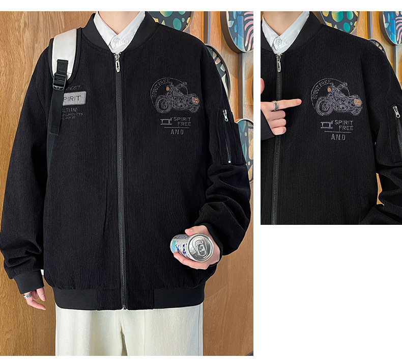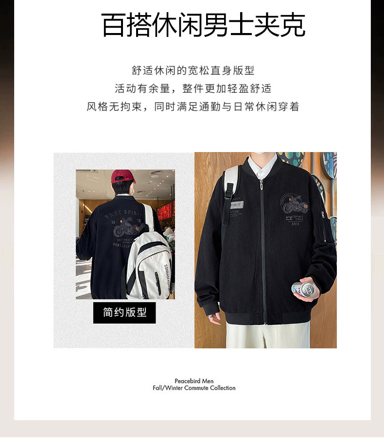 플러스 사이즈 칼라 남자 재킷 봄과 가을 트렌디 브랜드 올 매치 코듀로이 재킷 캐주얼 플러스 사이즈 뚱뚱한 야구 세트