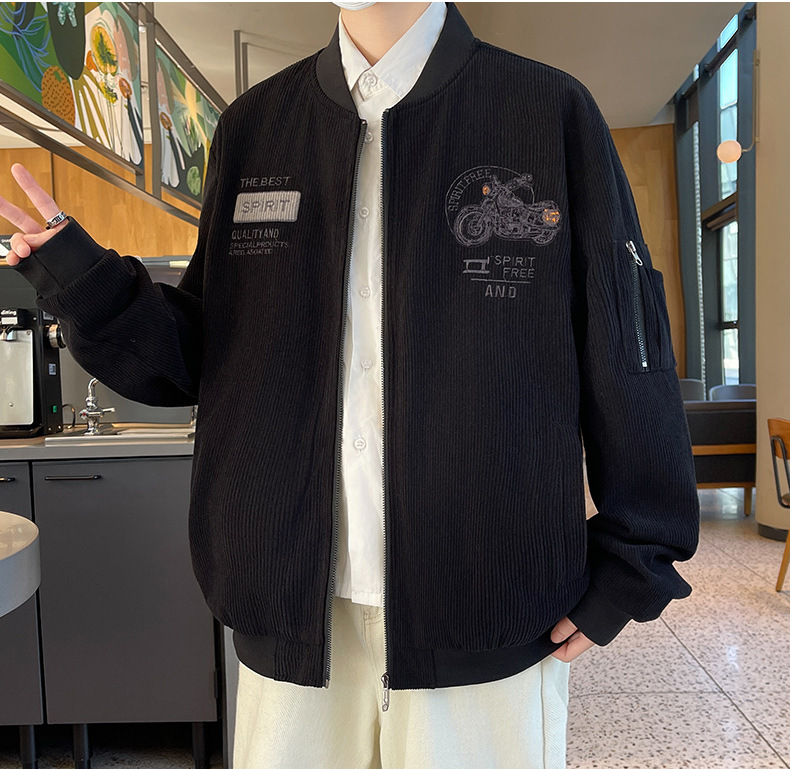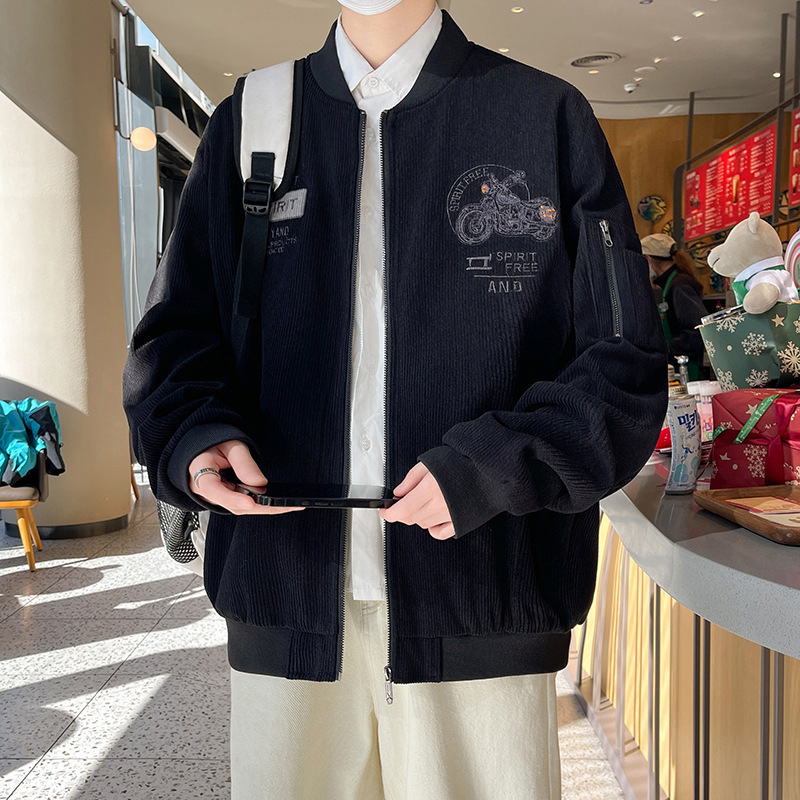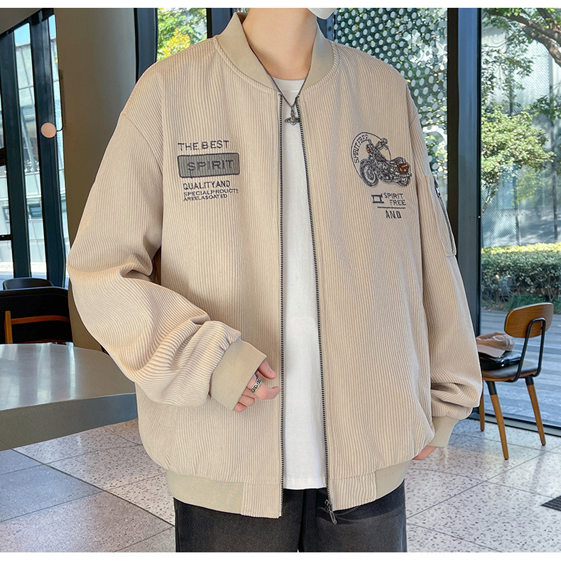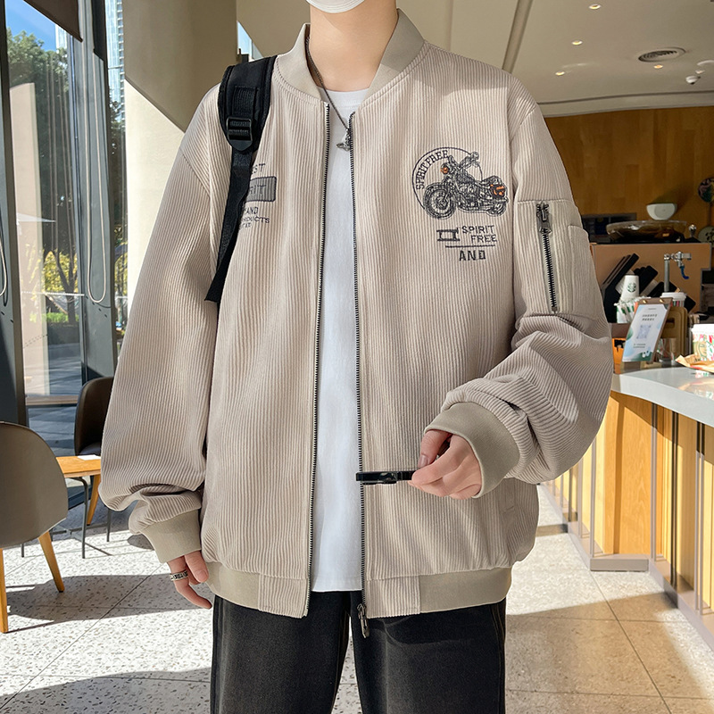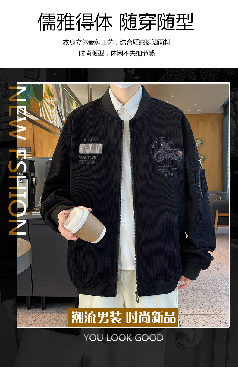 플러스 사이즈 칼라 남자 재킷 봄과 가을 트렌디 브랜드 올 매치 코듀로이 재킷 캐주얼 플러스 사이즈 뚱뚱한 야구 세트스토어 가기
