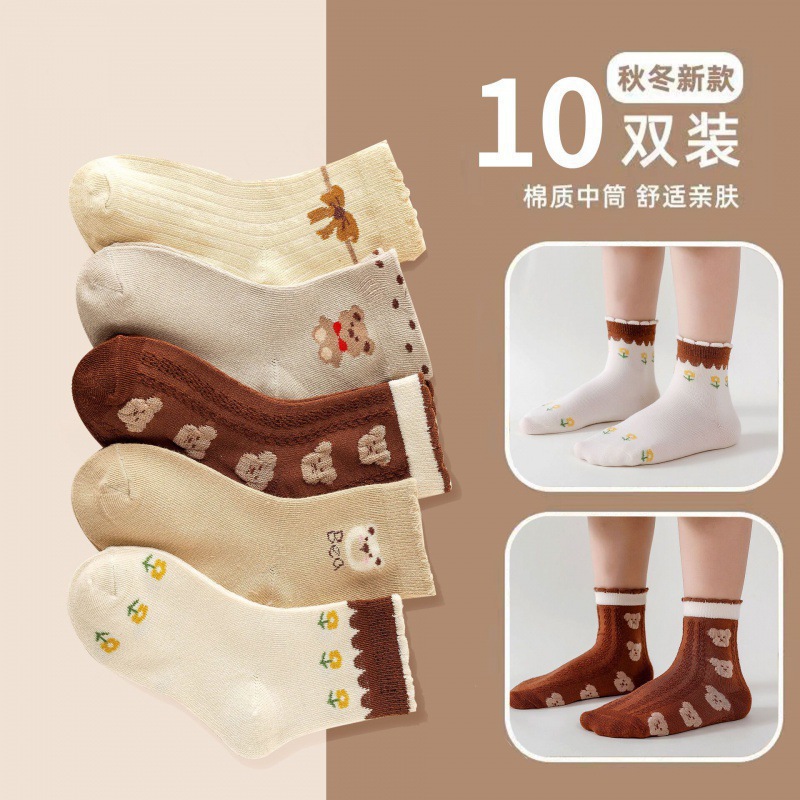 2025 봄과 가을 새로운 소녀 양말 귀여운 만화 소녀 양말 달콤한 작은 꽃 중소 어린이 면화 공장 다이파스토어 가기