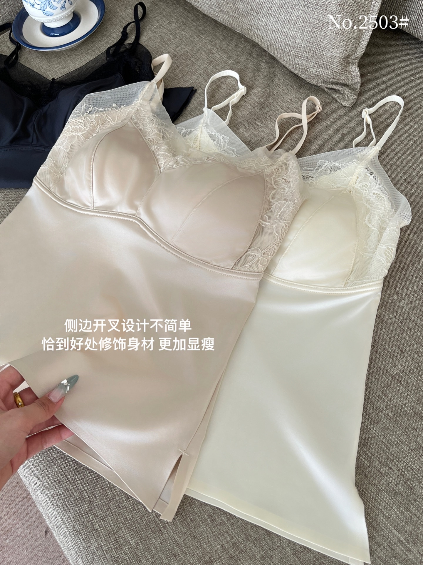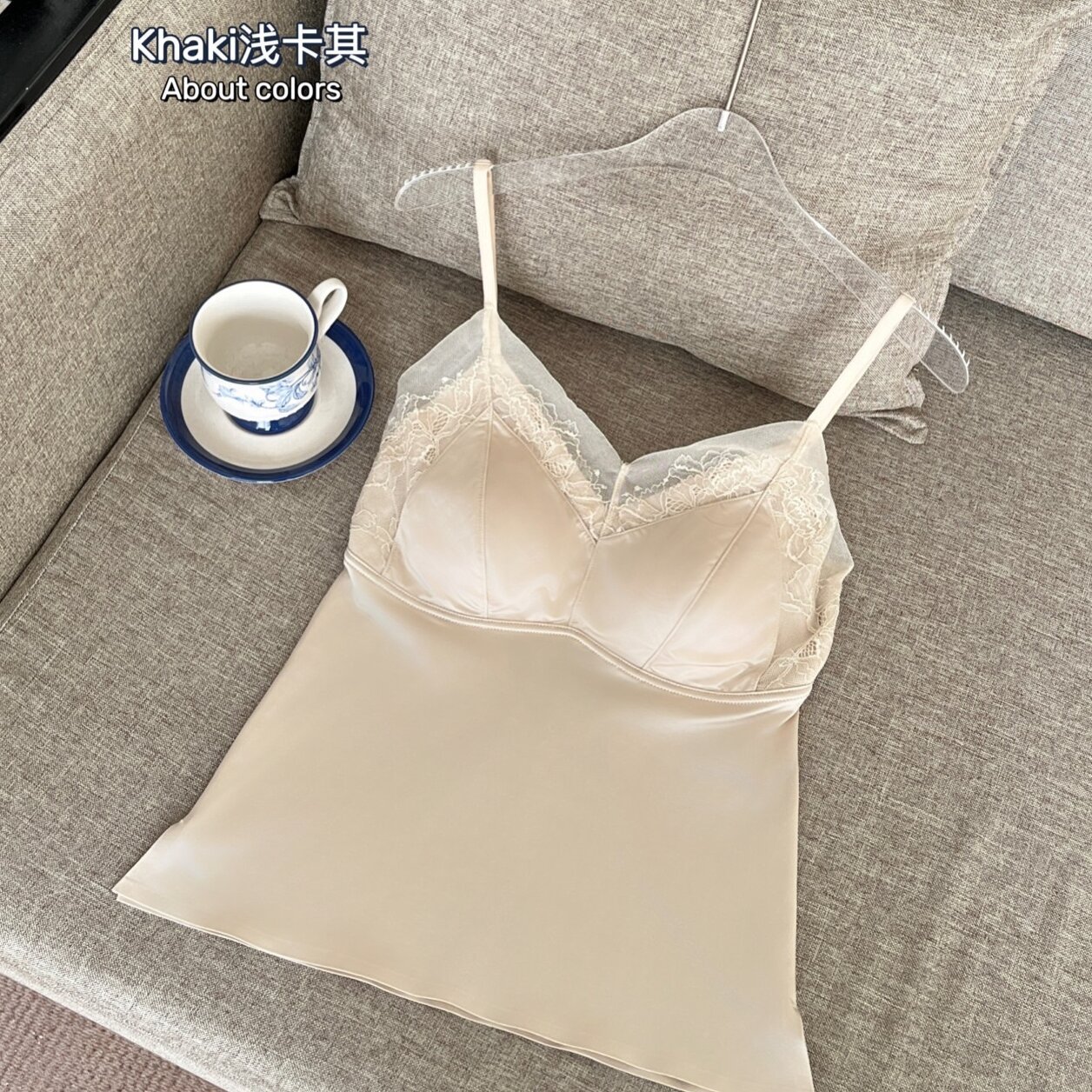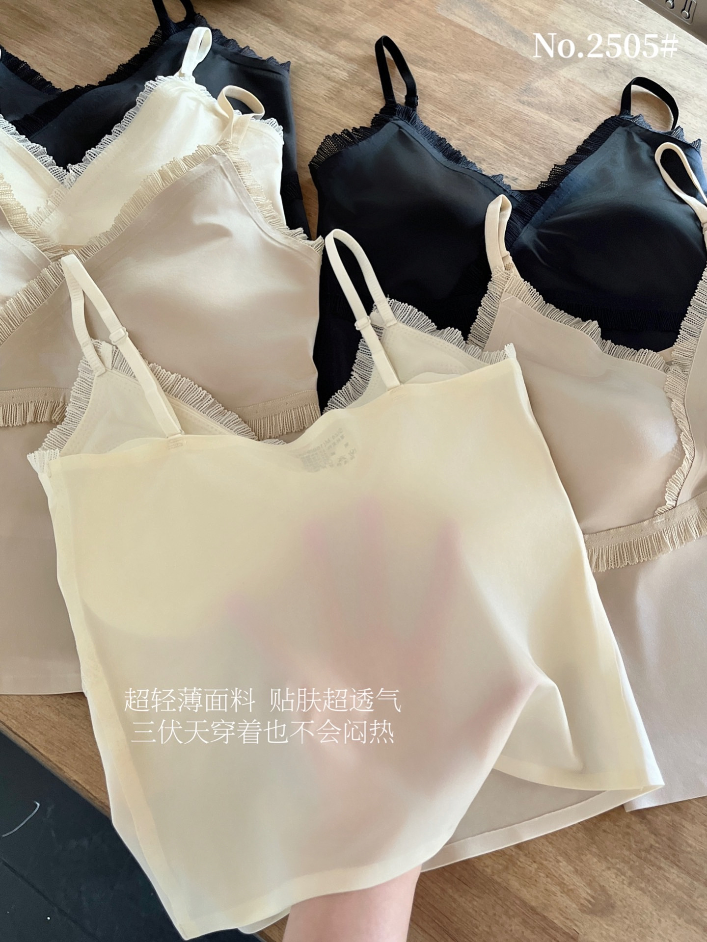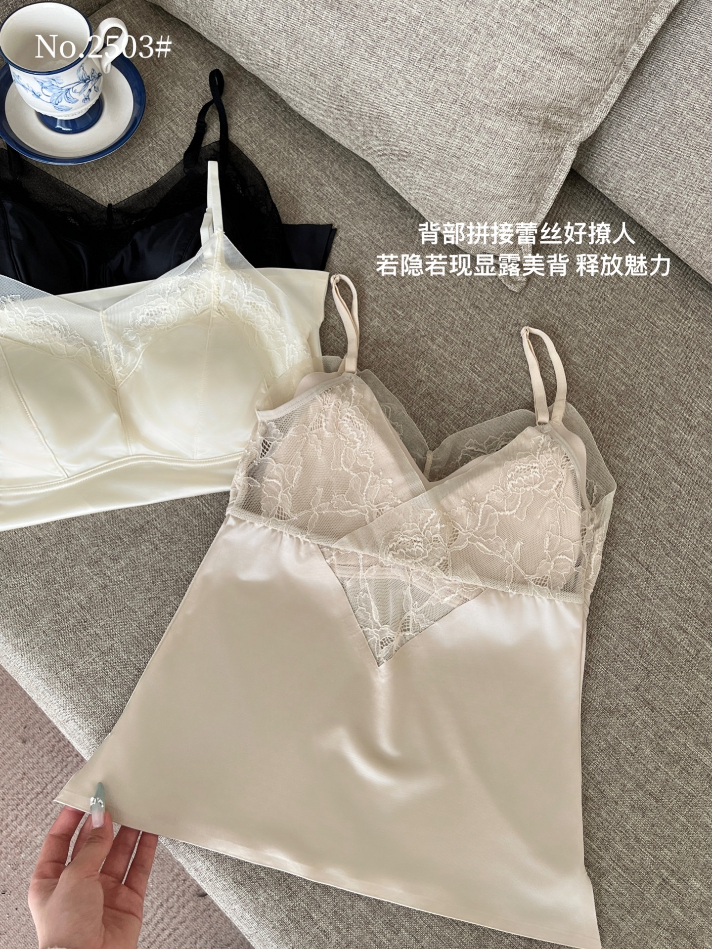 2025 새로운 새틴 레이스 라이트 럭셔리 뷰티 백 통합 고정 가슴 패드 플러스 사이즈 얇은 어깨 끈 조절 가능한 카미 솔 조끼스토어 가기