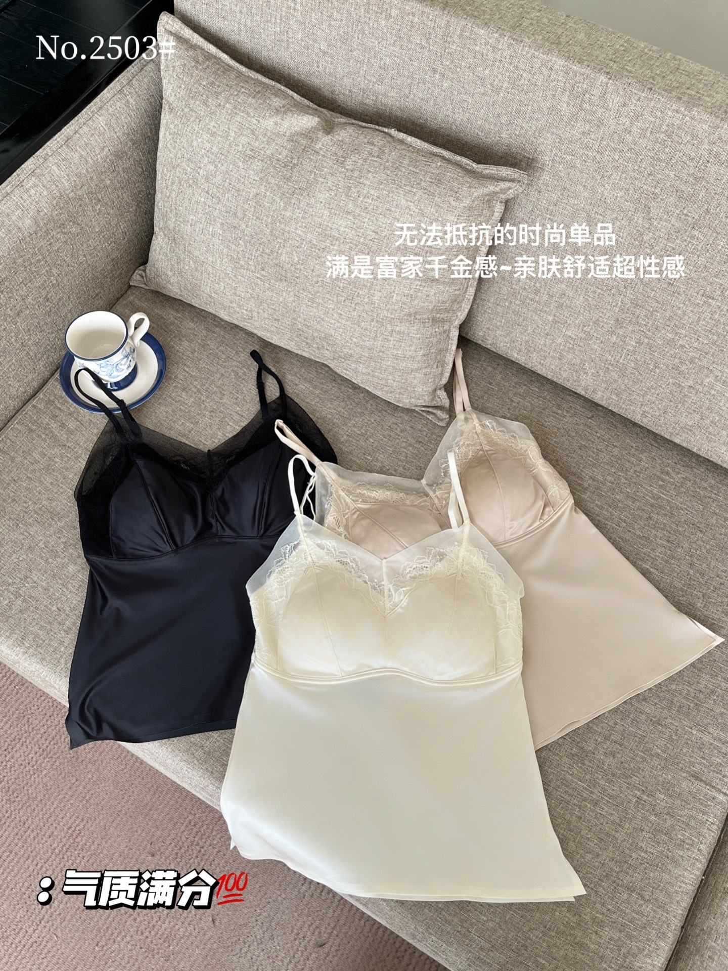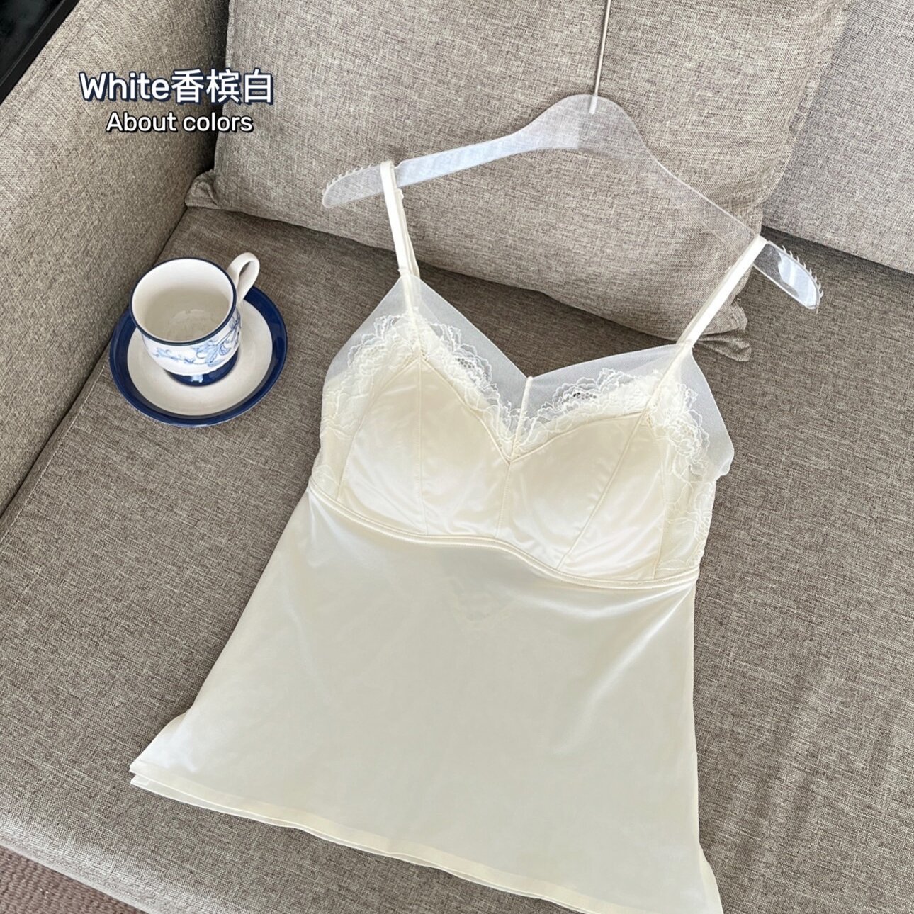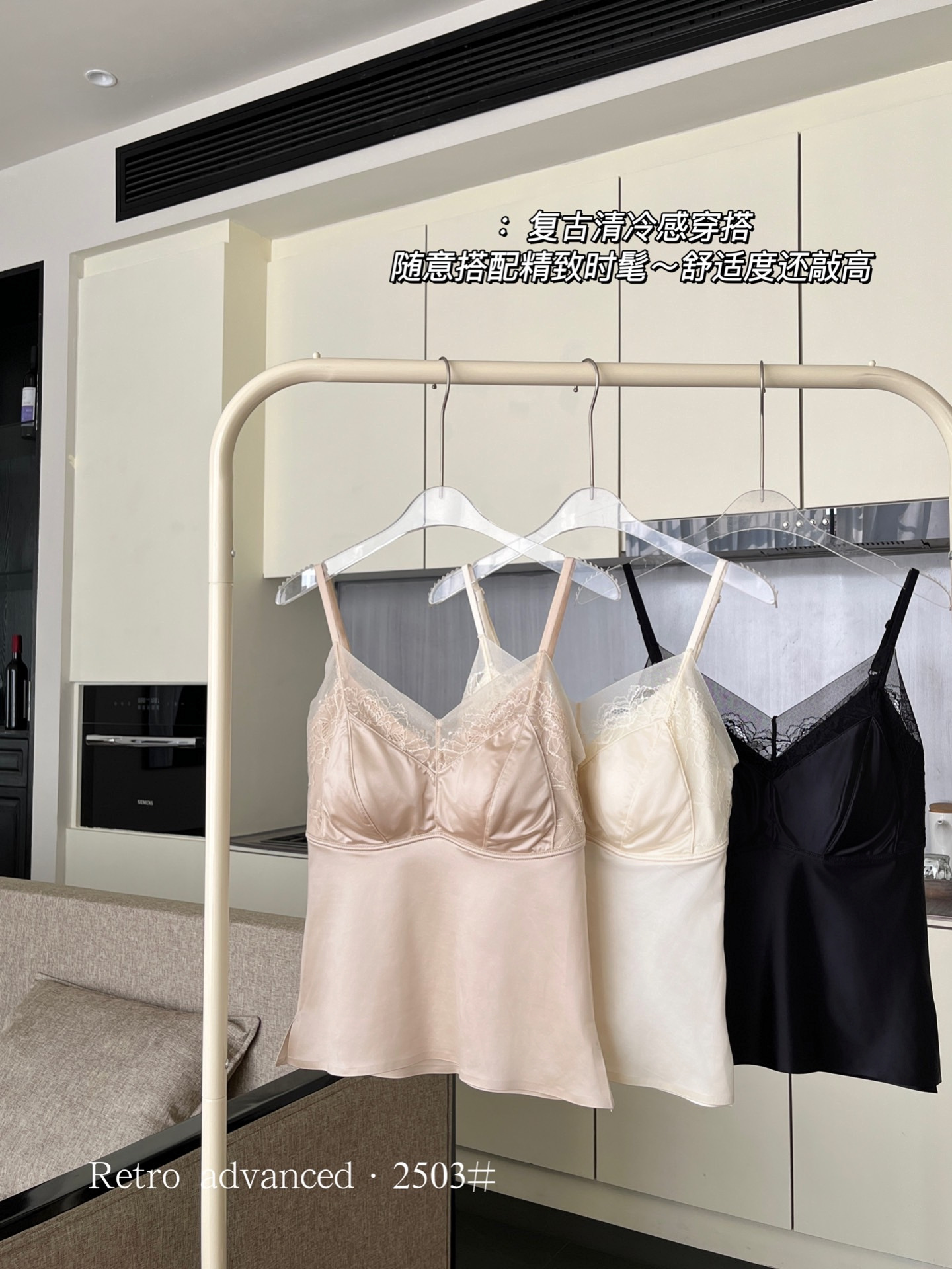2025 새로운 새틴 레이스 라이트 럭셔리 뷰티 백 통합 고정 가슴 패드 플러스 사이즈 얇은 어깨 끈 조절 가능한 카미 솔 조끼스토어 가기