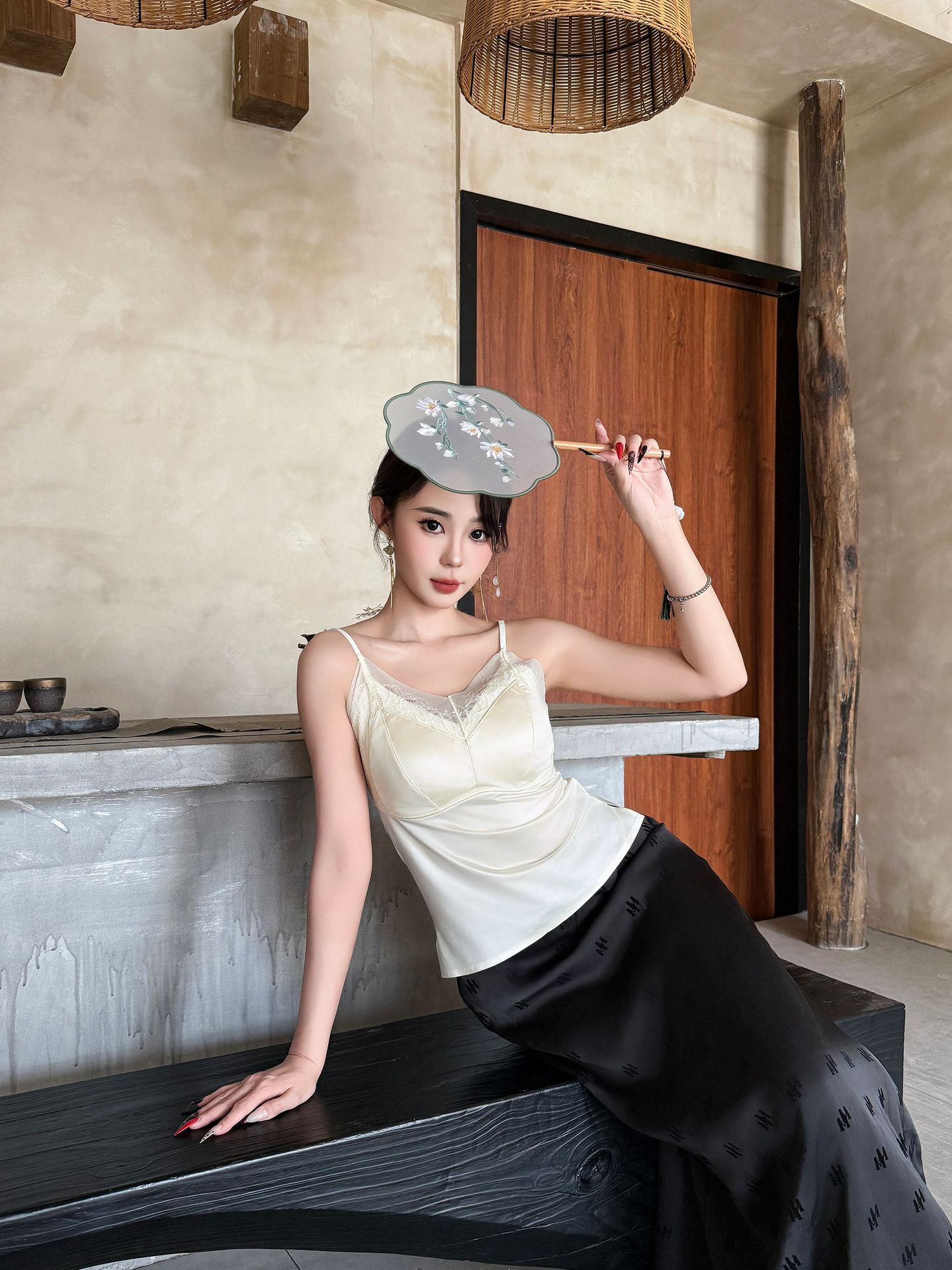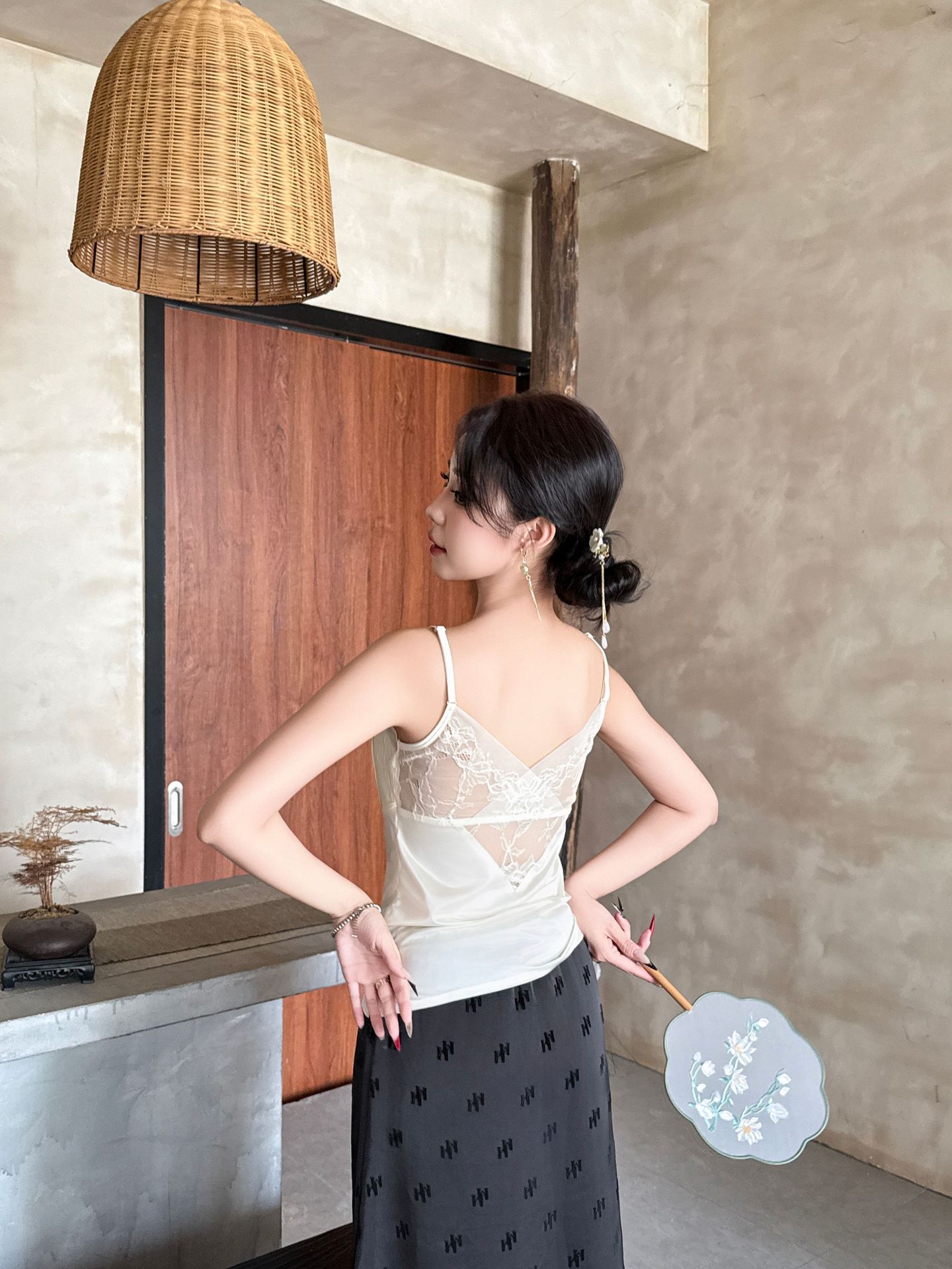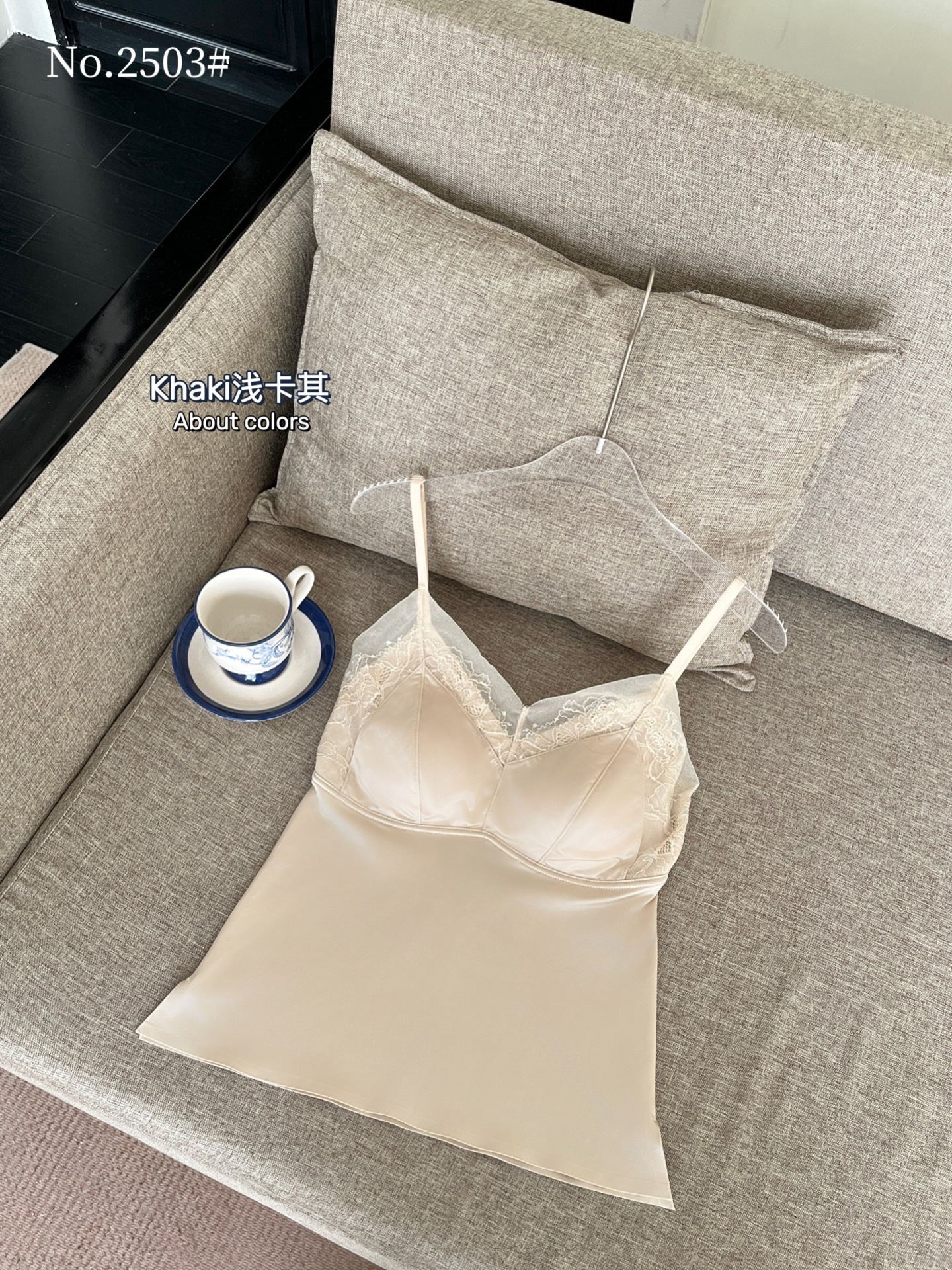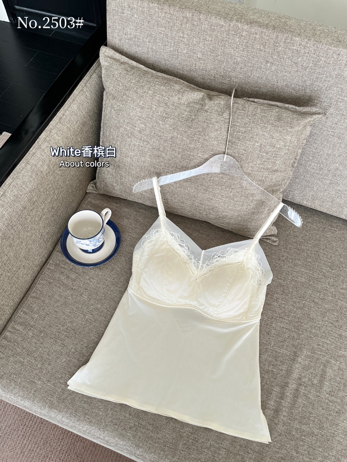 2025 새로운 새틴 레이스 라이트 럭셔리 뷰티 백 통합 고정 가슴 패드 플러스 사이즈 얇은 어깨 끈 조절 가능한 카미 솔 조끼스토어 가기