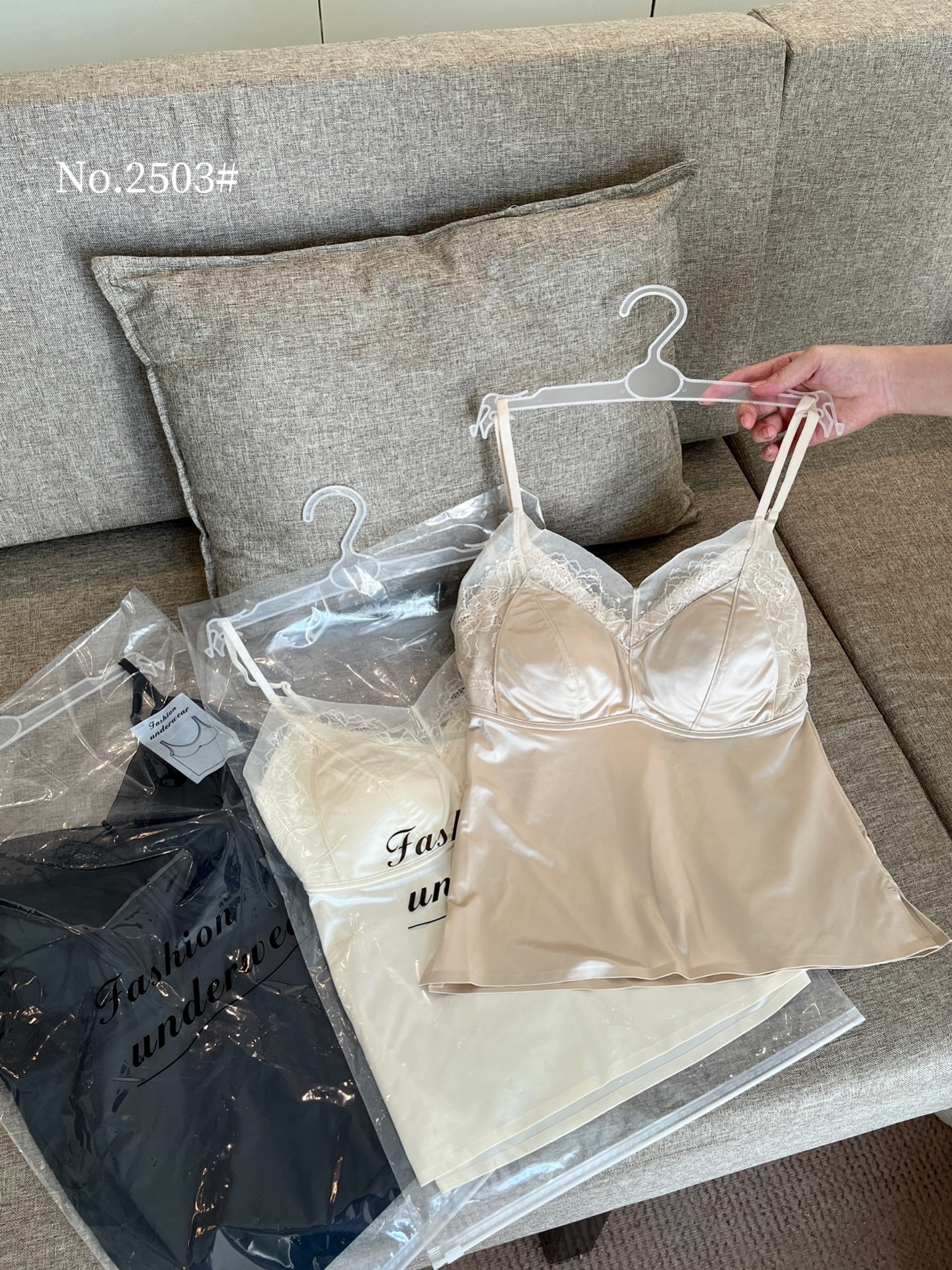 2025 새로운 새틴 레이스 라이트 럭셔리 뷰티 백 통합 고정 가슴 패드 플러스 사이즈 얇은 어깨 끈 조절 가능한 카미 솔 조끼