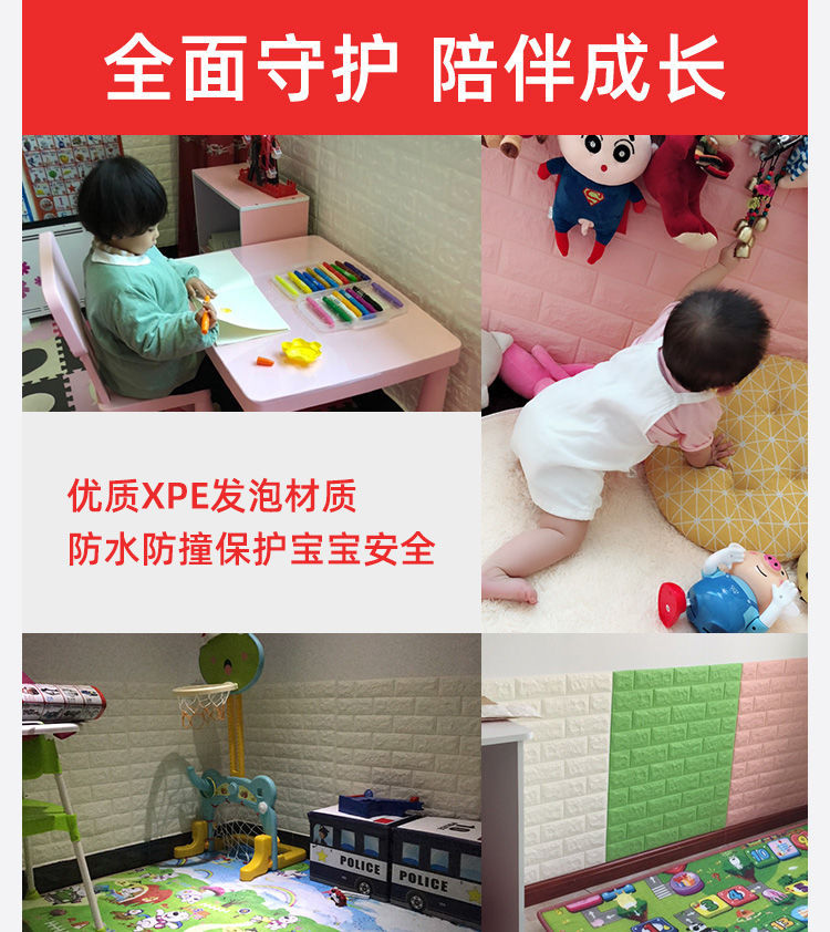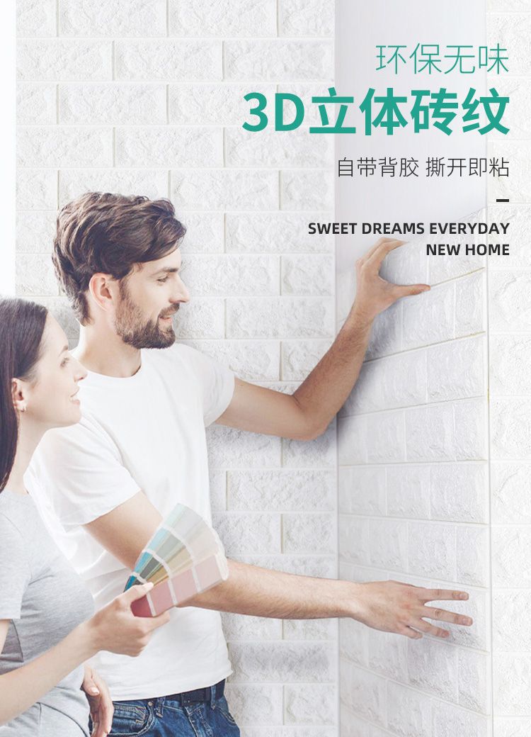 3D 벽 스티커 거품 벽돌 벽지 자기 접착 침실 벽지 방수 및 습기 방지 벽 장식 벽지스토어 가기
