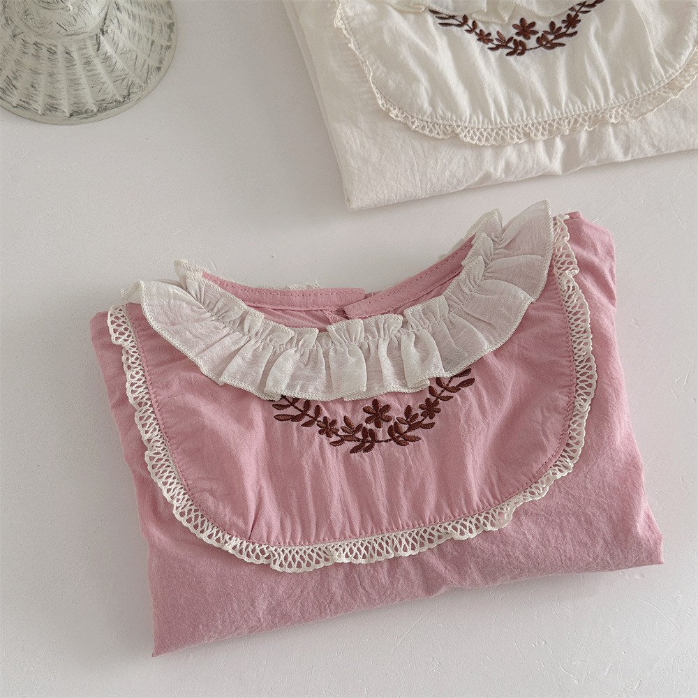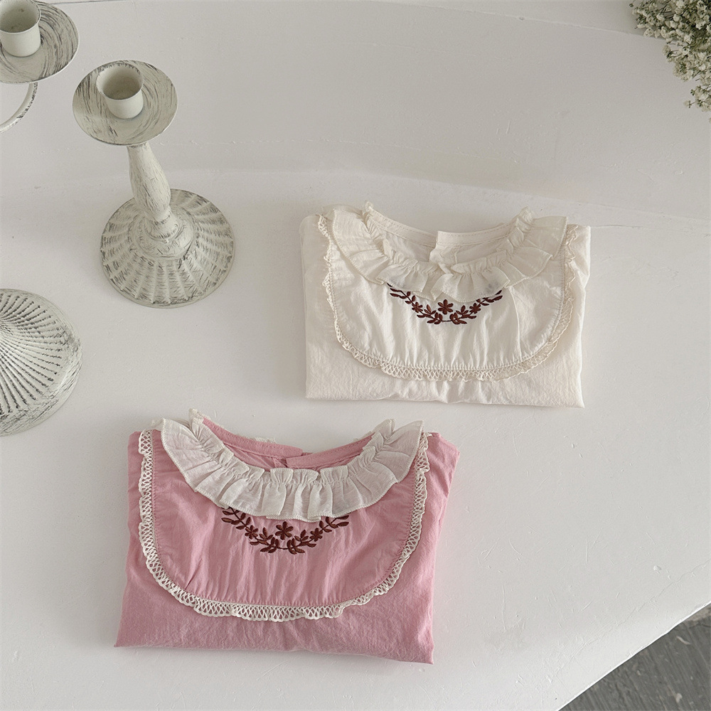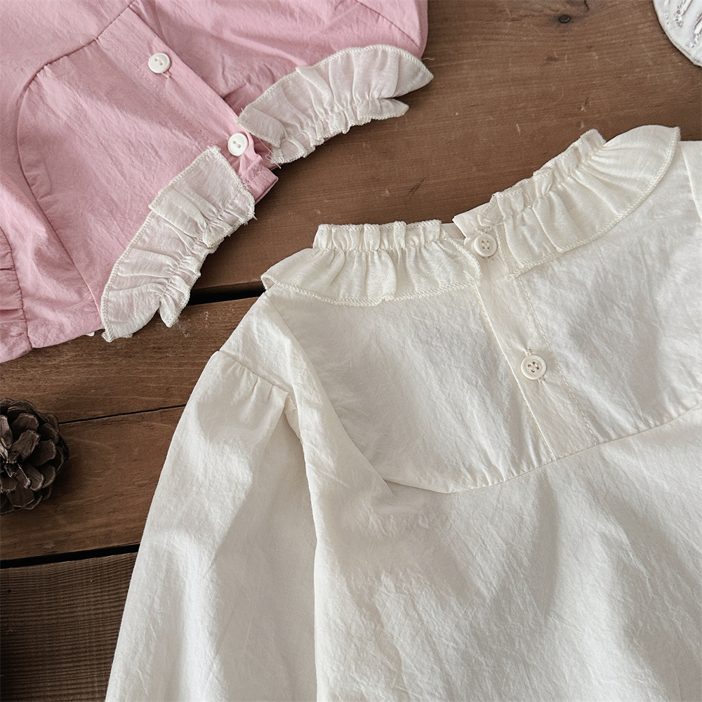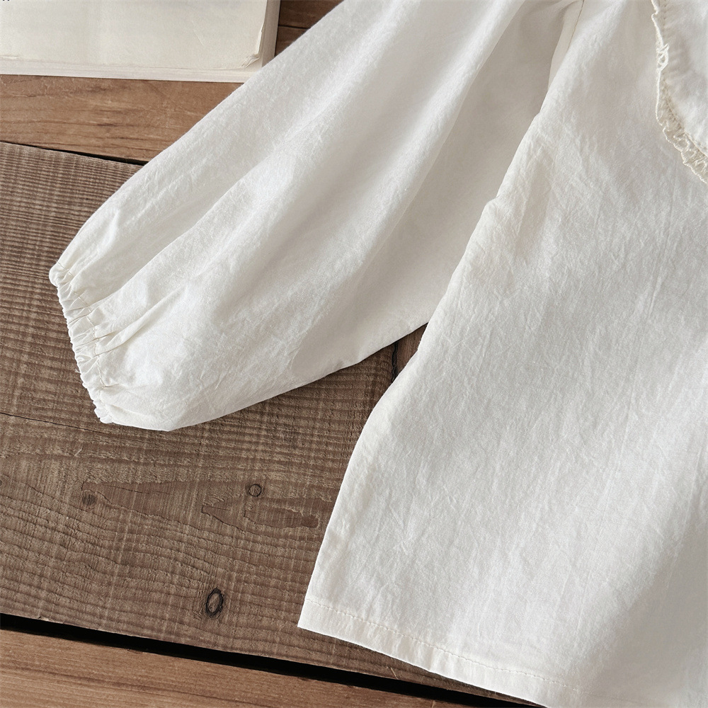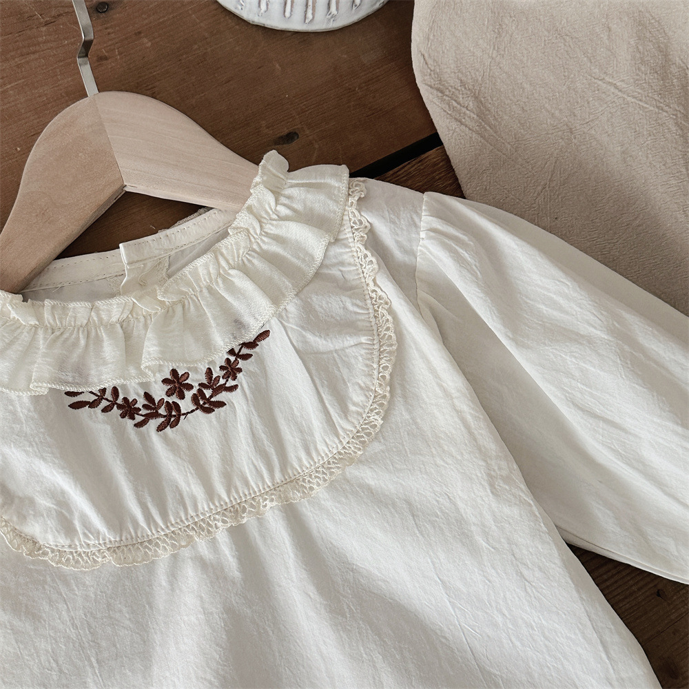 INS 봄과 가을 아기 쉬폰 Zou Zou 작은 연꽃 잎 칼라 가슴 수 놓은 긴 소매 셔츠 여성의 보물