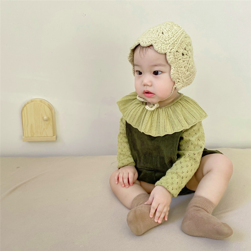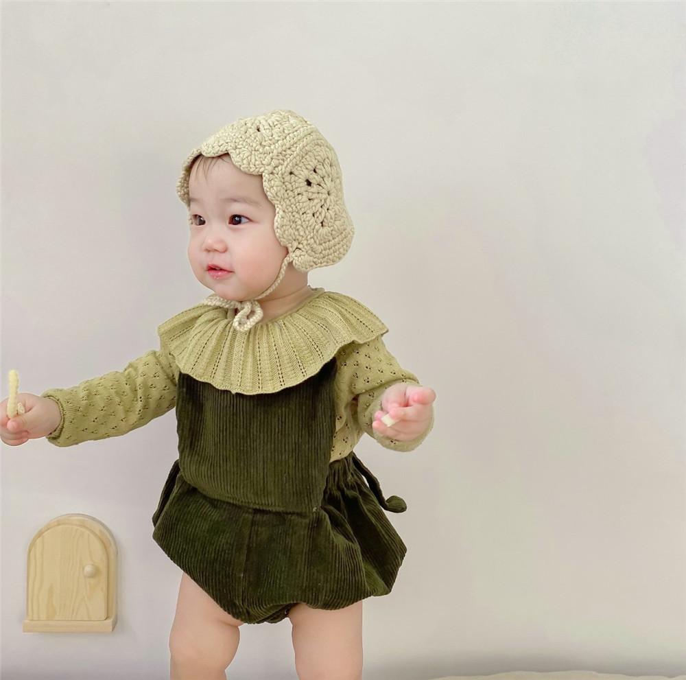 INS 봄과 가을 여성의 아기 면 큰 연꽃 칼라 할로우 꽃 풀오버 스웨터 걸스 울 탑