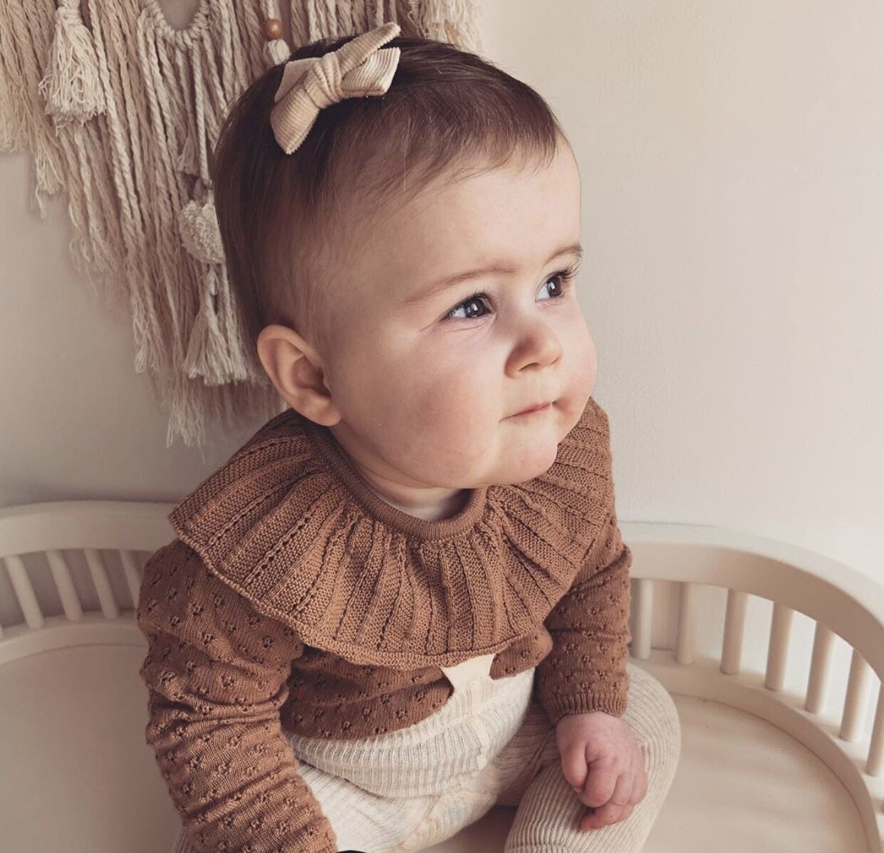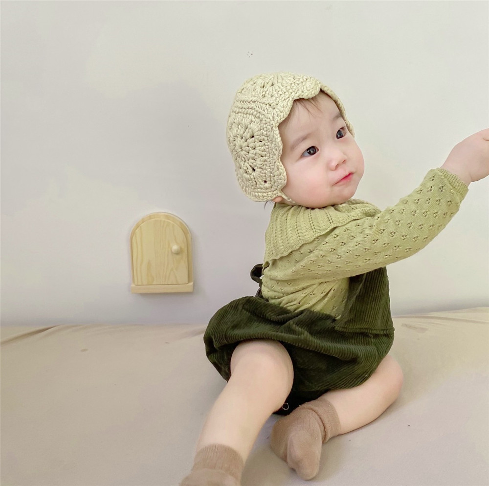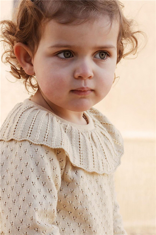 INS 봄과 가을 여성의 아기 면 큰 연꽃 칼라 할로우 꽃 풀오버 스웨터 걸스 울 탑스토어 가기