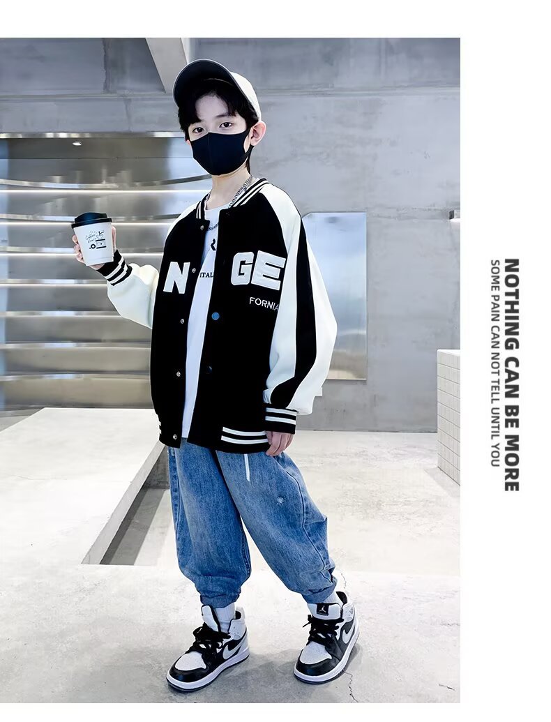 소년 컬러 블록 야구 세트 2025 새로운 어린이 봄과 가을 유행 유행 캐주얼 코트 트렌디스토어 가기