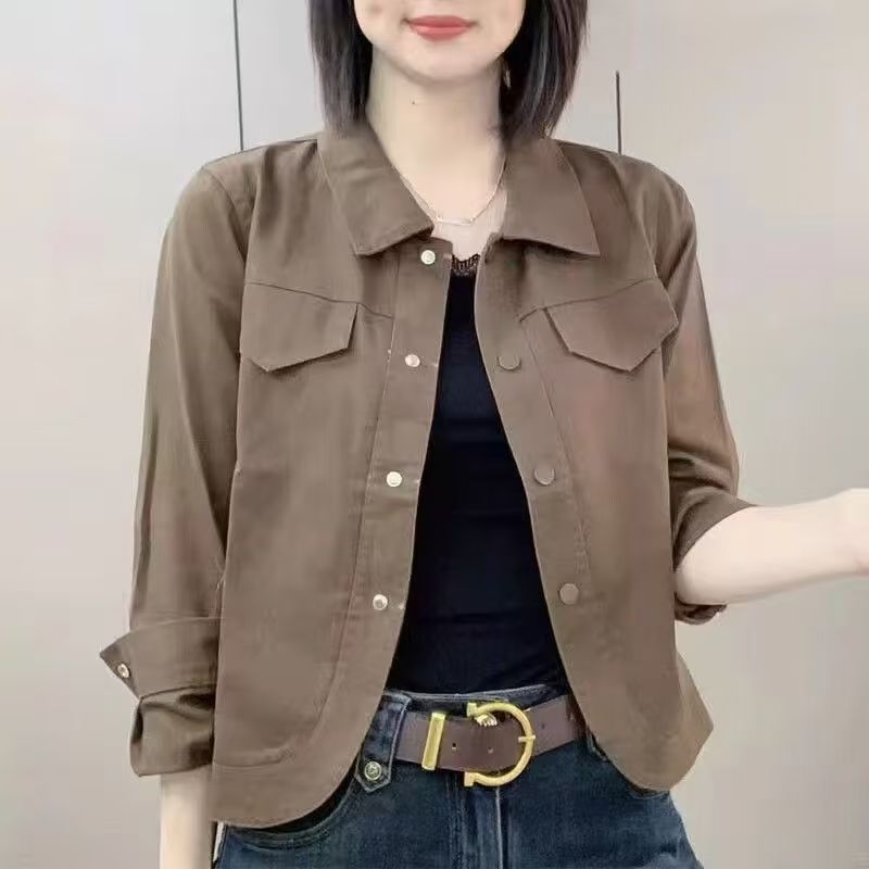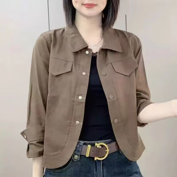 2025 봄 새 캐주얼 코트 여자 틈새 폴로 칼라 작업복 한국식 패셔너블 루즈 올매치 탑