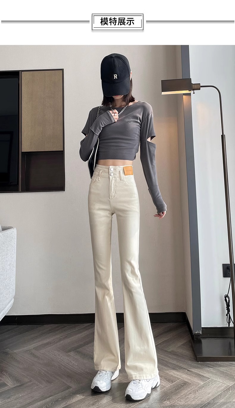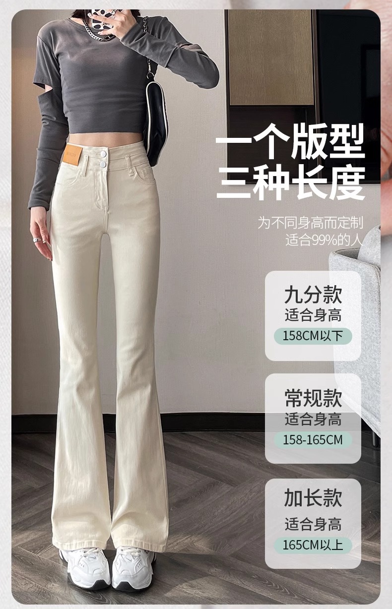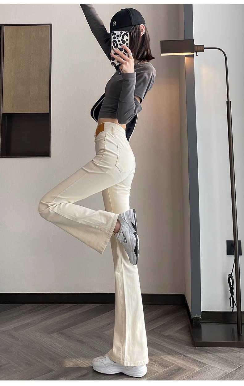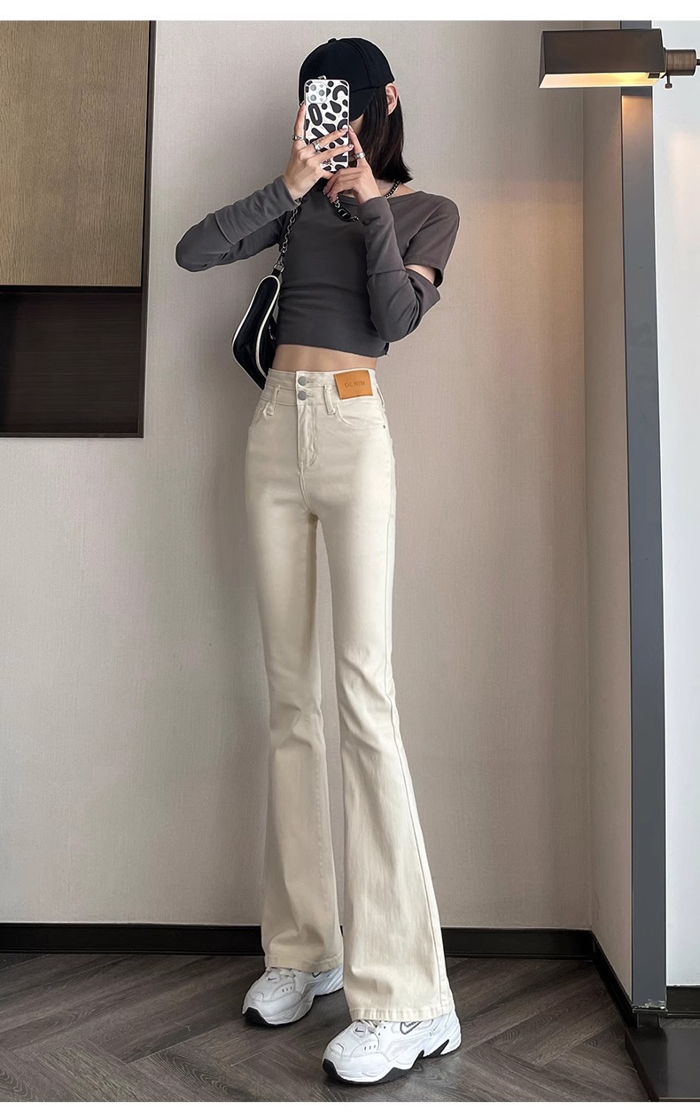 아이보리 마이크로 라 청바지 여성 2025 새로운 봄 높은 허리 슬리밍 슬림 스트레치 말굽 트럼펫 바지스토어 가기