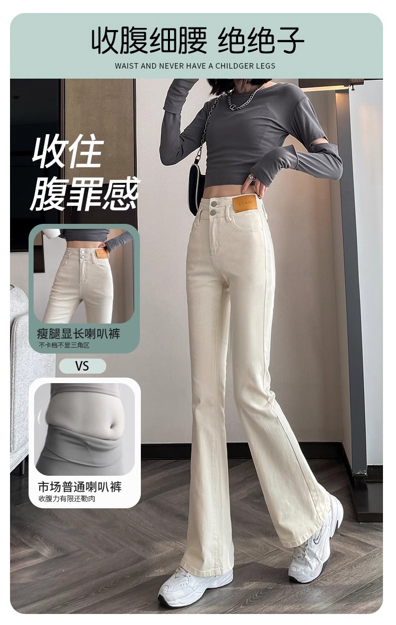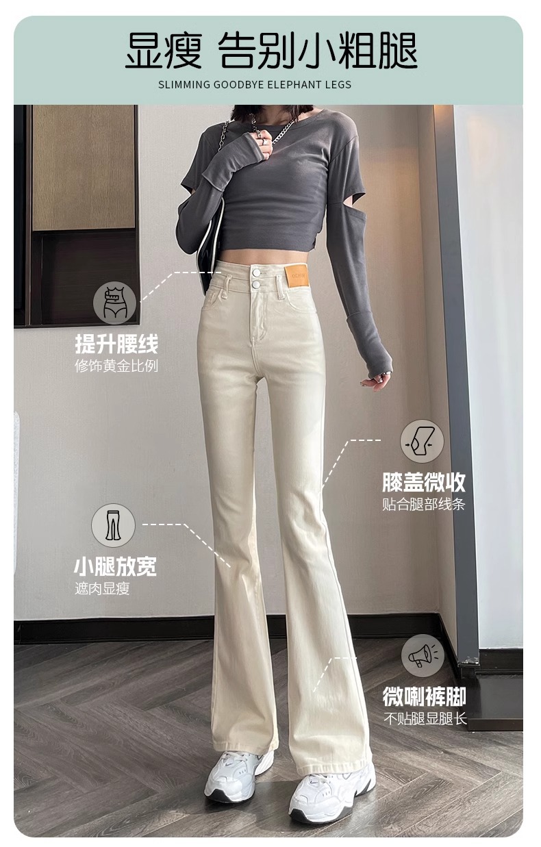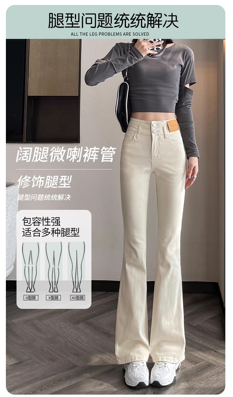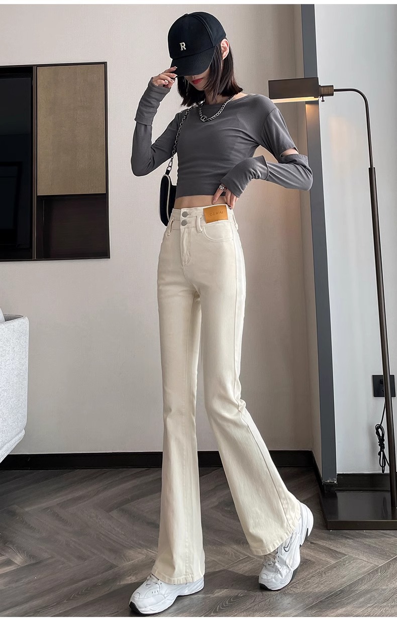 아이보리 마이크로 라 청바지 여성 2025 새로운 봄 높은 허리 슬리밍 슬림 스트레치 말굽 트럼펫 바지스토어 가기
