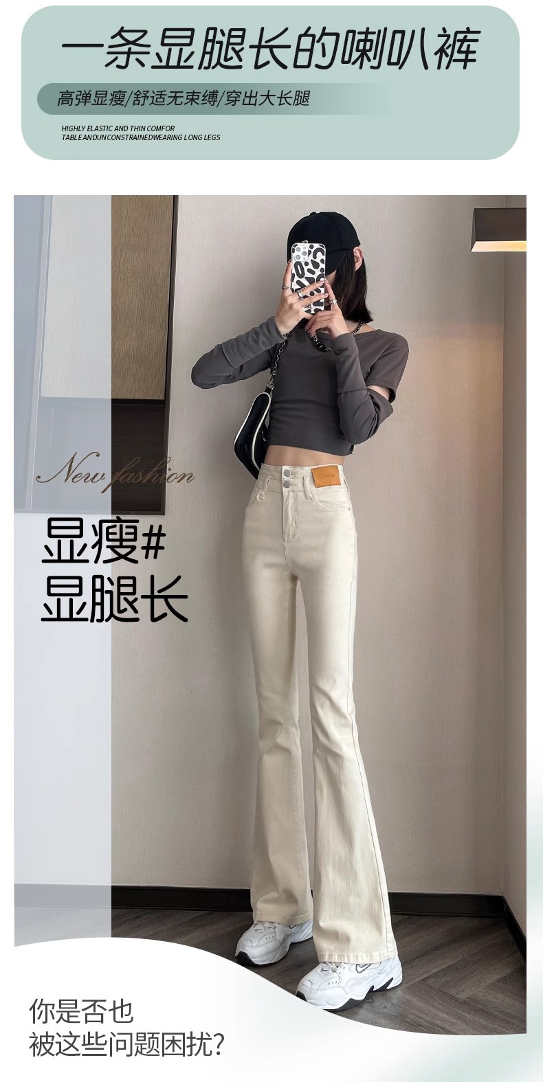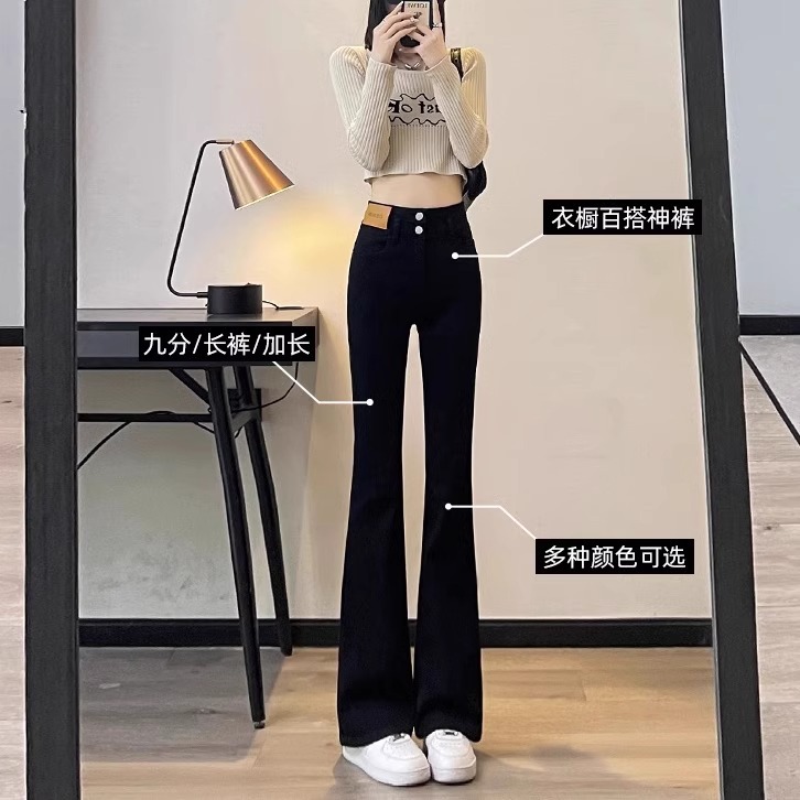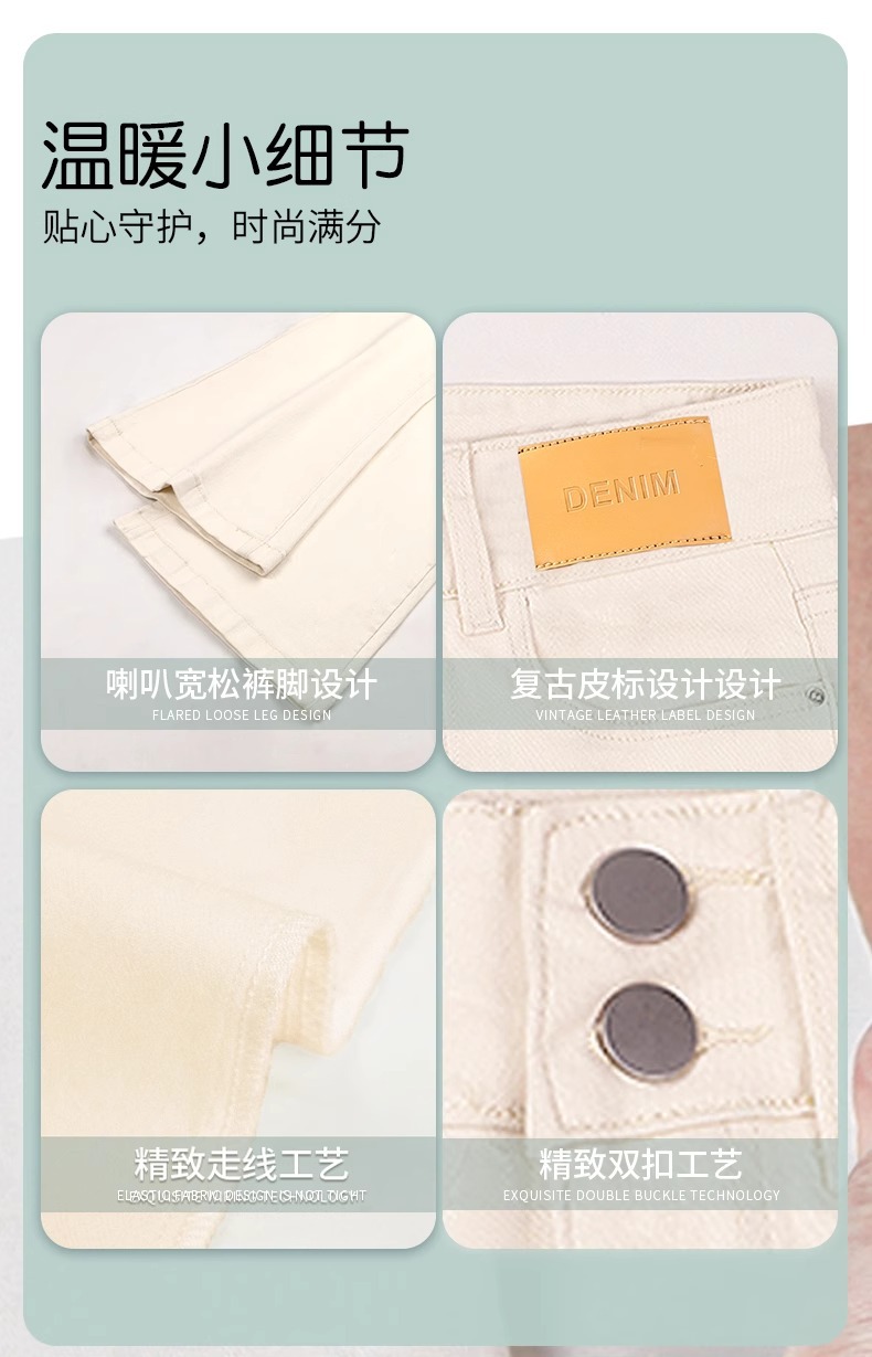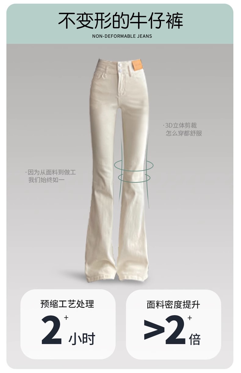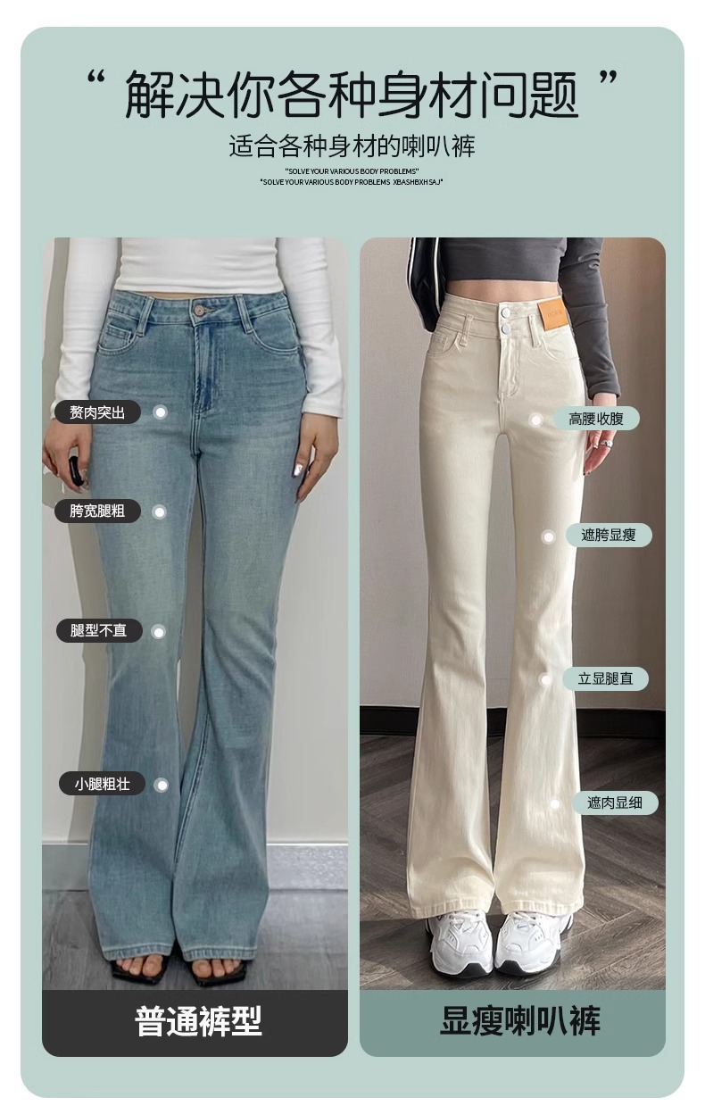 아이보리 마이크로 라 청바지 여성 2025 새로운 봄 높은 허리 슬리밍 슬림 스트레치 말굽 트럼펫 바지스토어 가기
