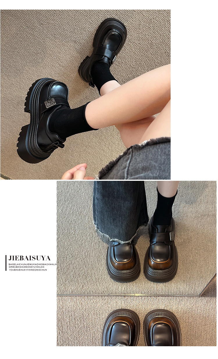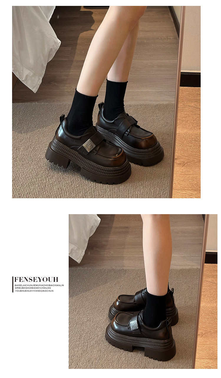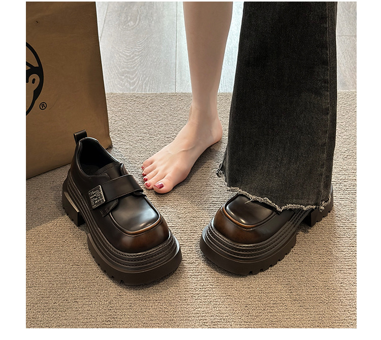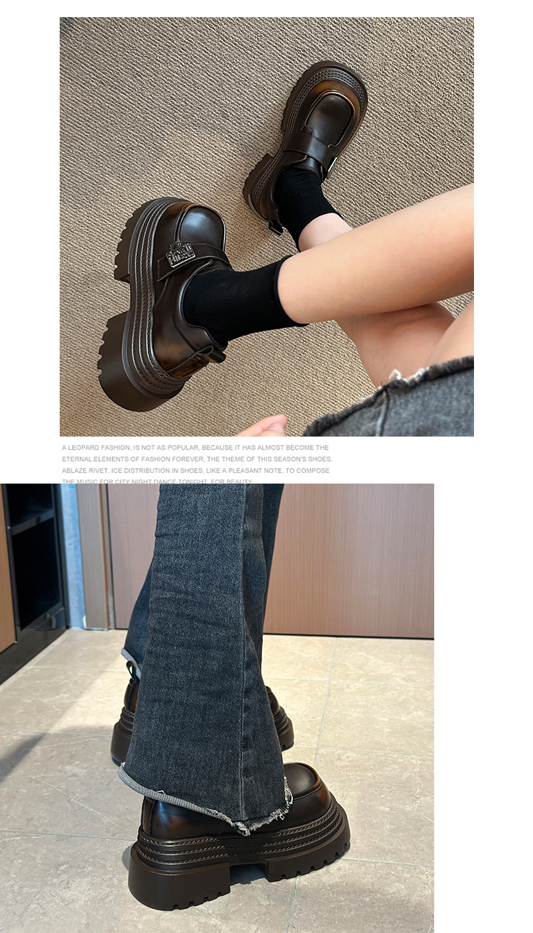 영국 스타일의 작은 가죽 신발 2025 봄과 가을 슈퍼 핫 새로운 스타일 플랫폼 두꺼운 하단 레트로 캐주얼 패션 청키 힐 로퍼스토어 가기