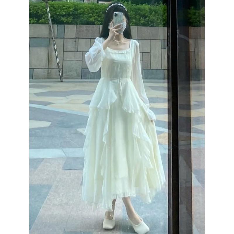 2025 초가을 신상 프랑스 스타일 여성용 긴팔 드레스, 니치 디자인, 부드럽고 우아한 스타일, 슈퍼 요정 드레스
