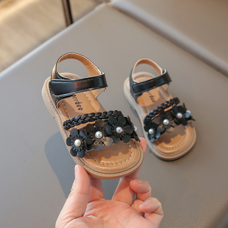 여자 신발 어린이 꽃 공주 샌들 2025 새로운 여름 여름 아기 해변 부드러운 단독 유아 도매스토어 가기