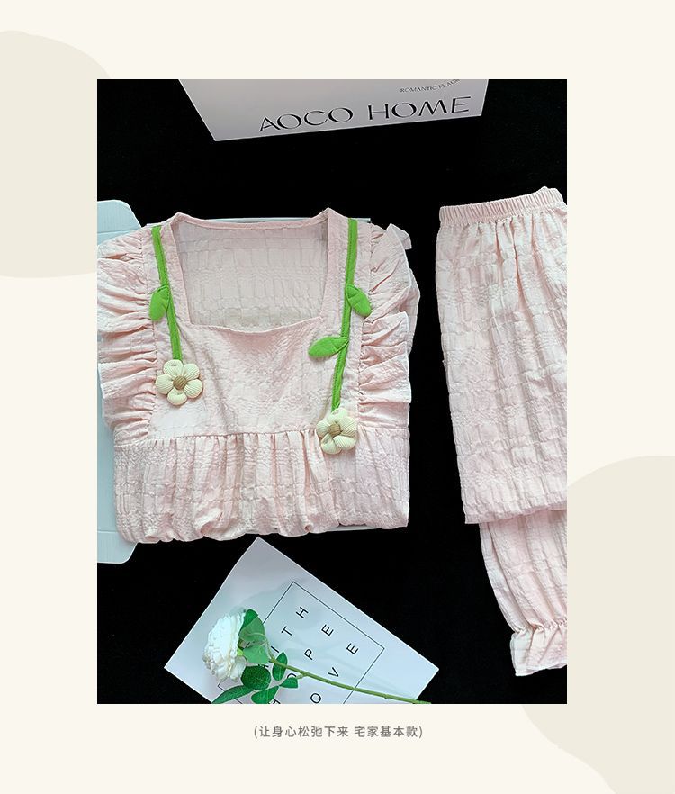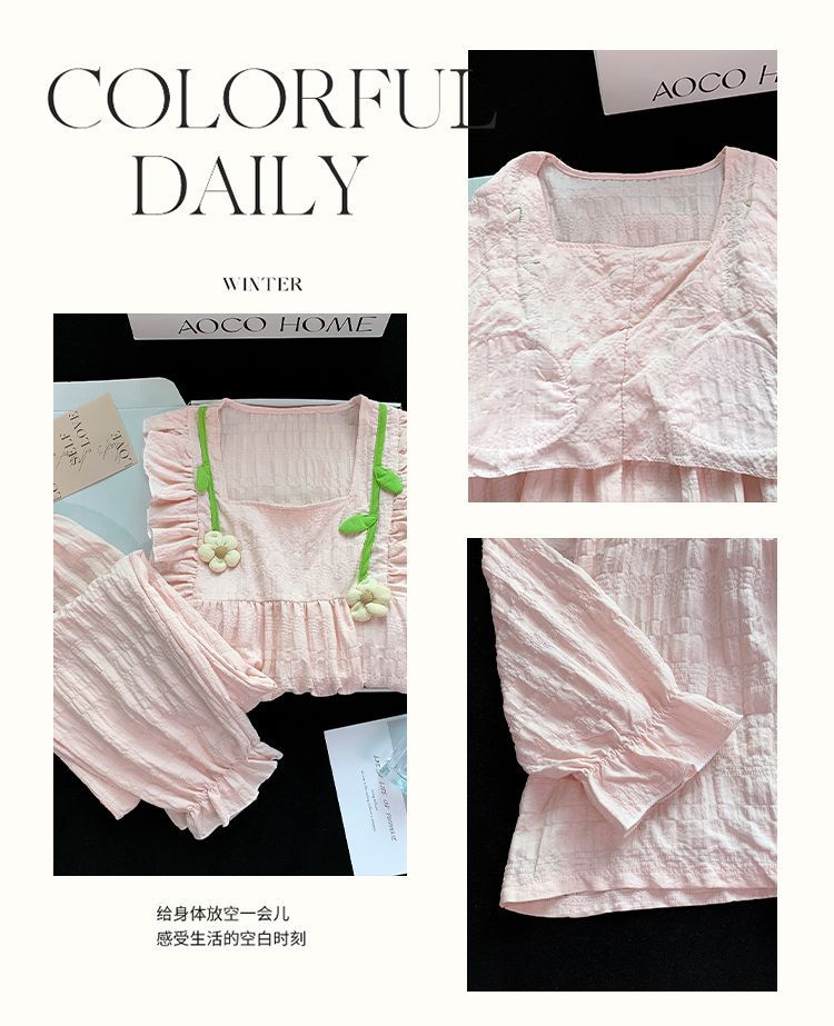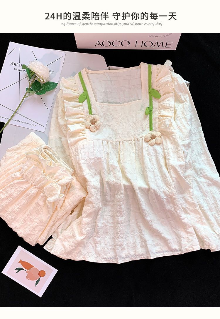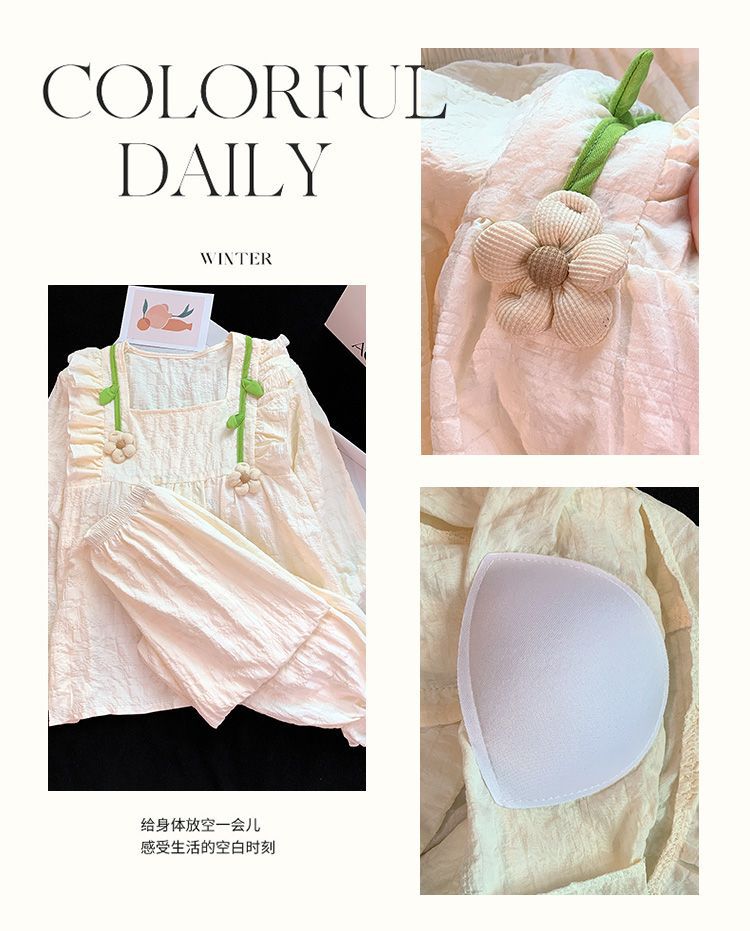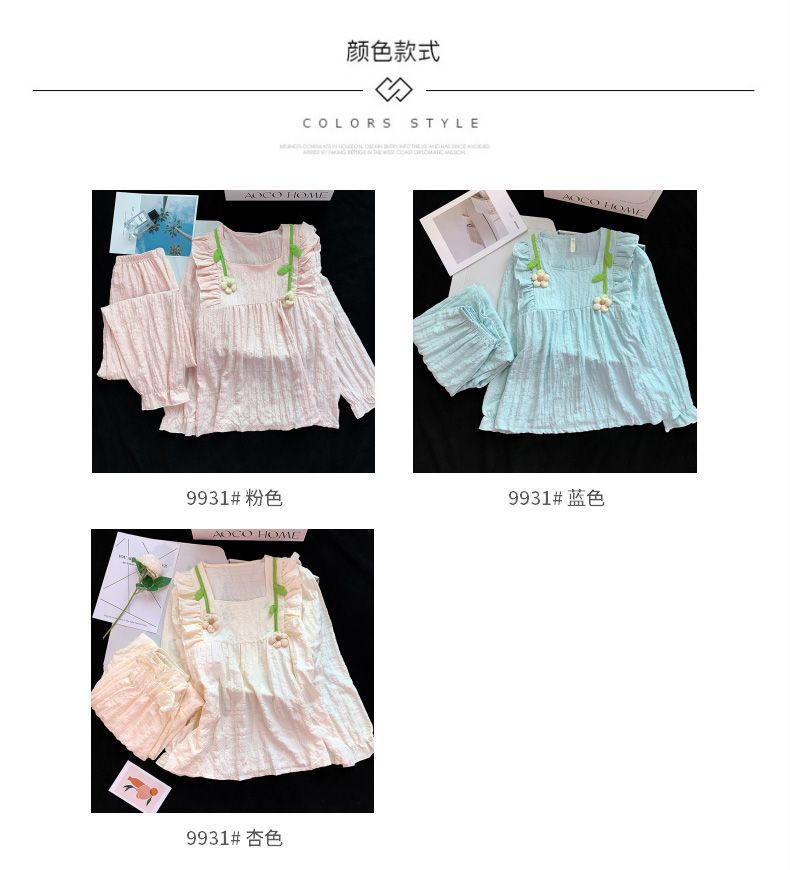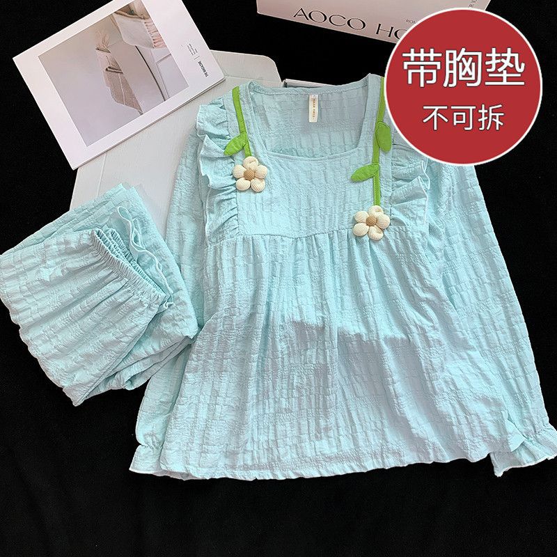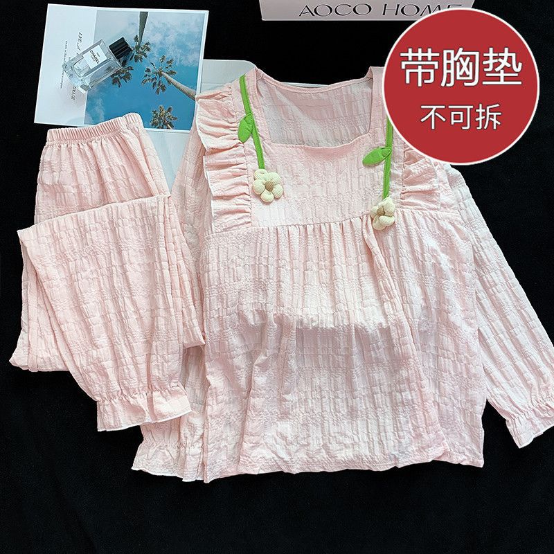 2025 새로운 스타일 잠옷 여성의 봄과 가을 구름 코튼 벨트 가슴 패드 긴 소매 귀여운 공주 스타일 홈 의류 세트스토어 가기