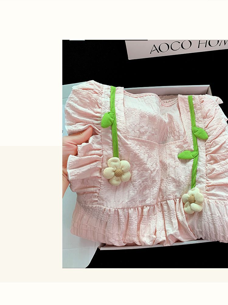2025 새로운 스타일 잠옷 여성의 봄과 가을 구름 코튼 벨트 가슴 패드 긴 소매 귀여운 공주 스타일 홈 의류 세트