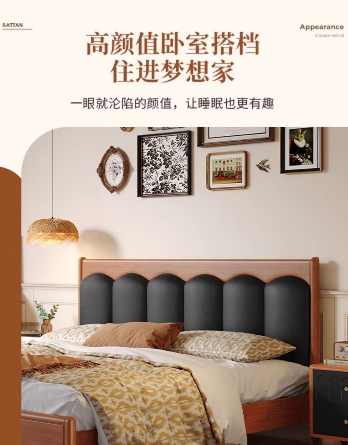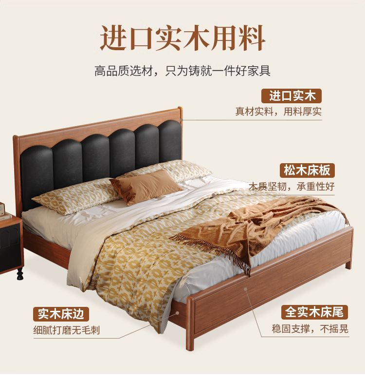 북유럽 단단한 나무 침대 골동품 현대 간단한 침대 1.8 m 더블 라이트 럭셔리 부드러운 침대 1.5 m 마스터 침실 웨딩 침대