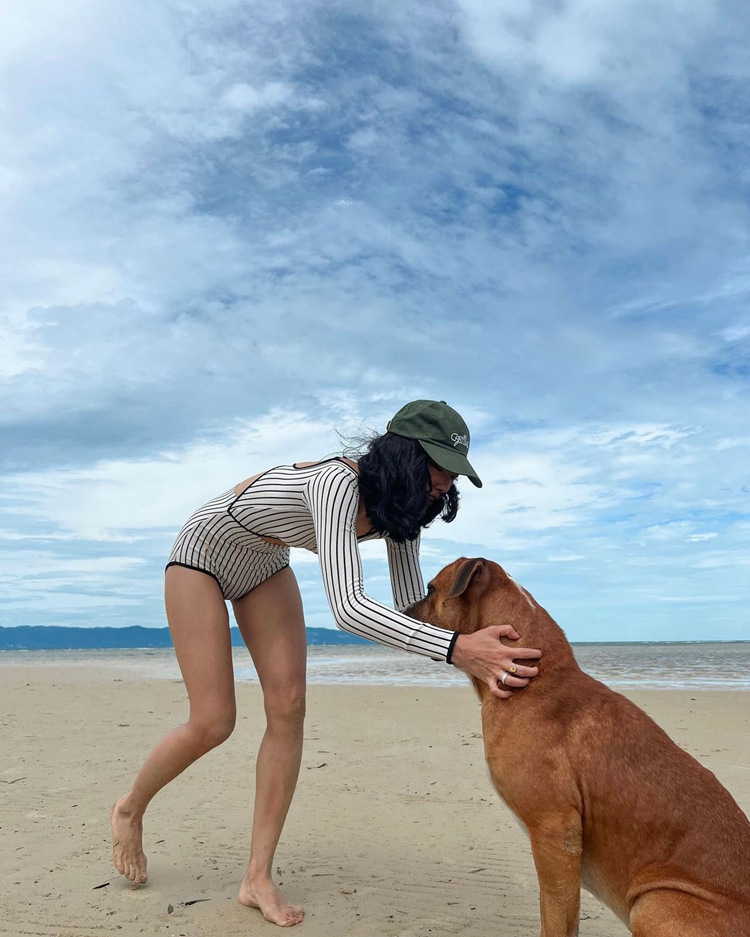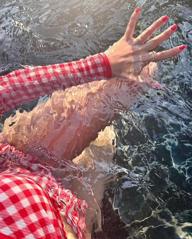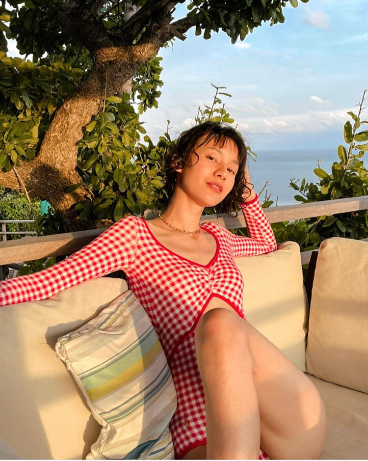 2025 빈티지 격자 무늬 긴팔 선 스크린 수영복 여성 인스 타 그램 스타일 휴가 온천 하이 엔드 슬림 백리스 수영복스토어 가기