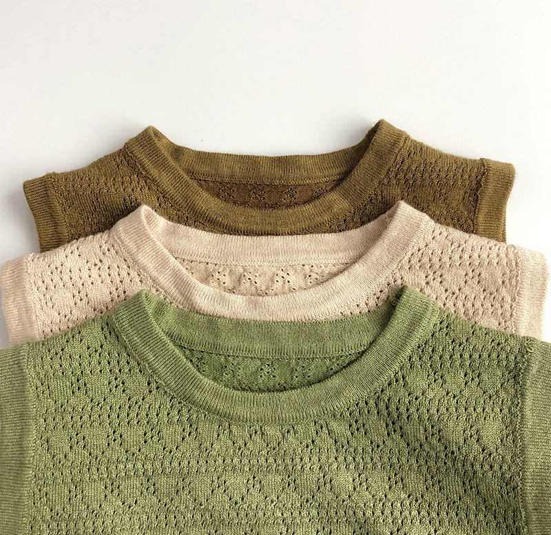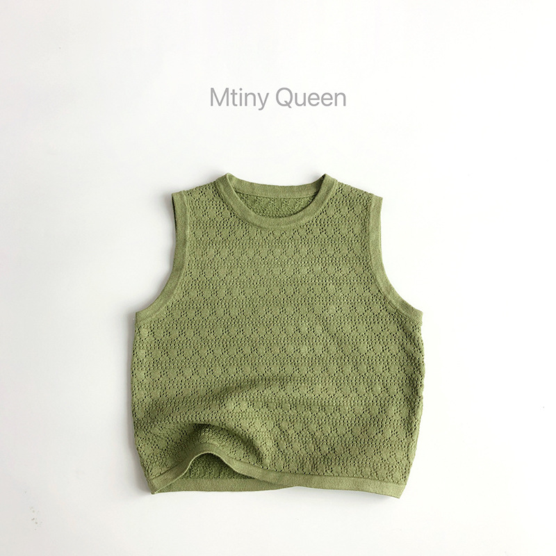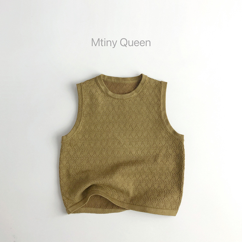 한국 오리지널 퀄리티 암소 ~ 소프트 와시 쿨 ~ 여름 새로운 어린이 스웨터 남녀 서양식 할로우 니트 민소매 조끼