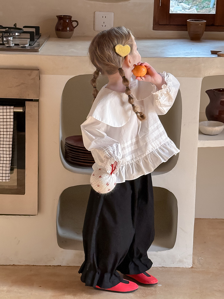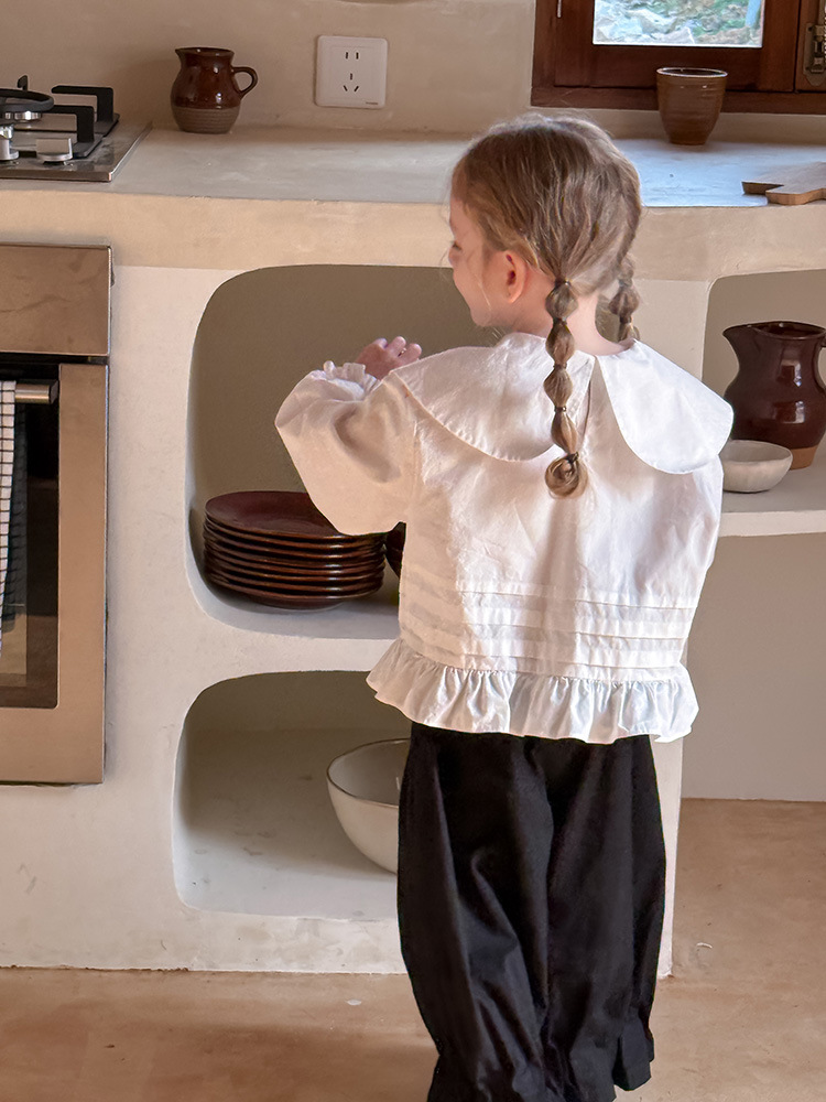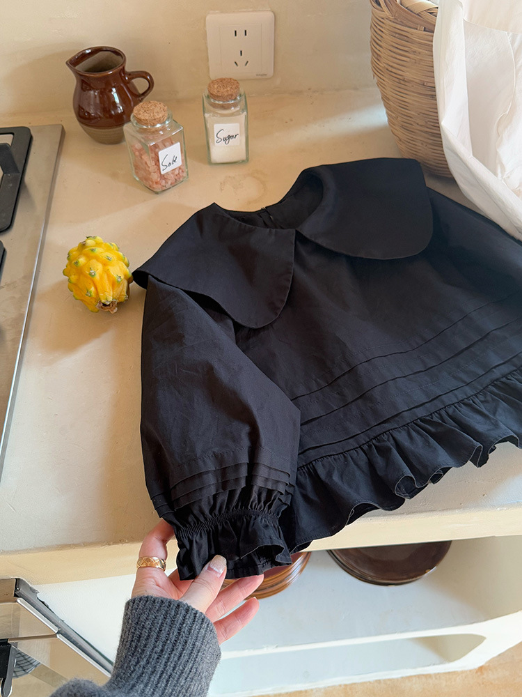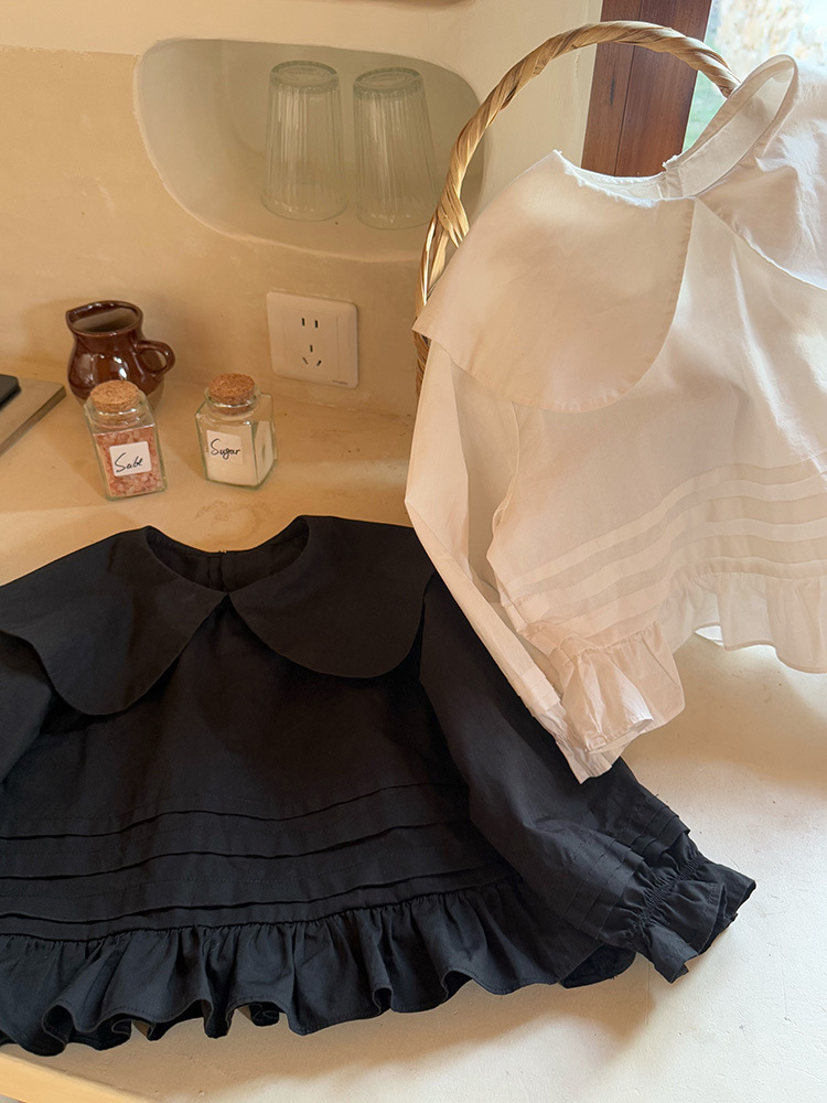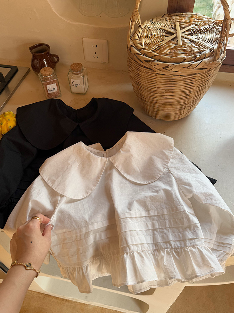 여자 흑백 옷깃 셔츠 2021 봄, 여름 새로운 한국 스타일 어린이 레이스 긴팔 셔츠 아동상의