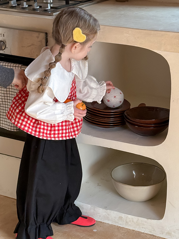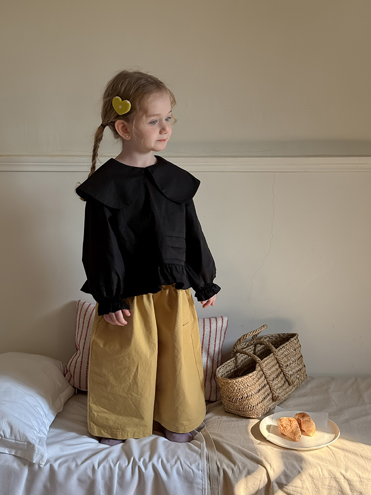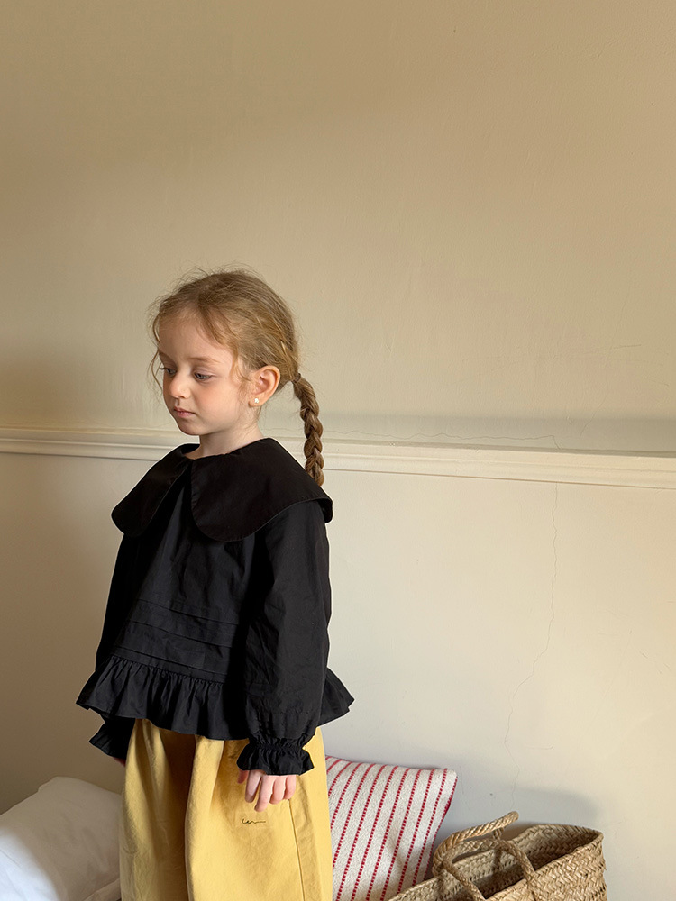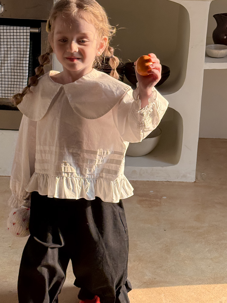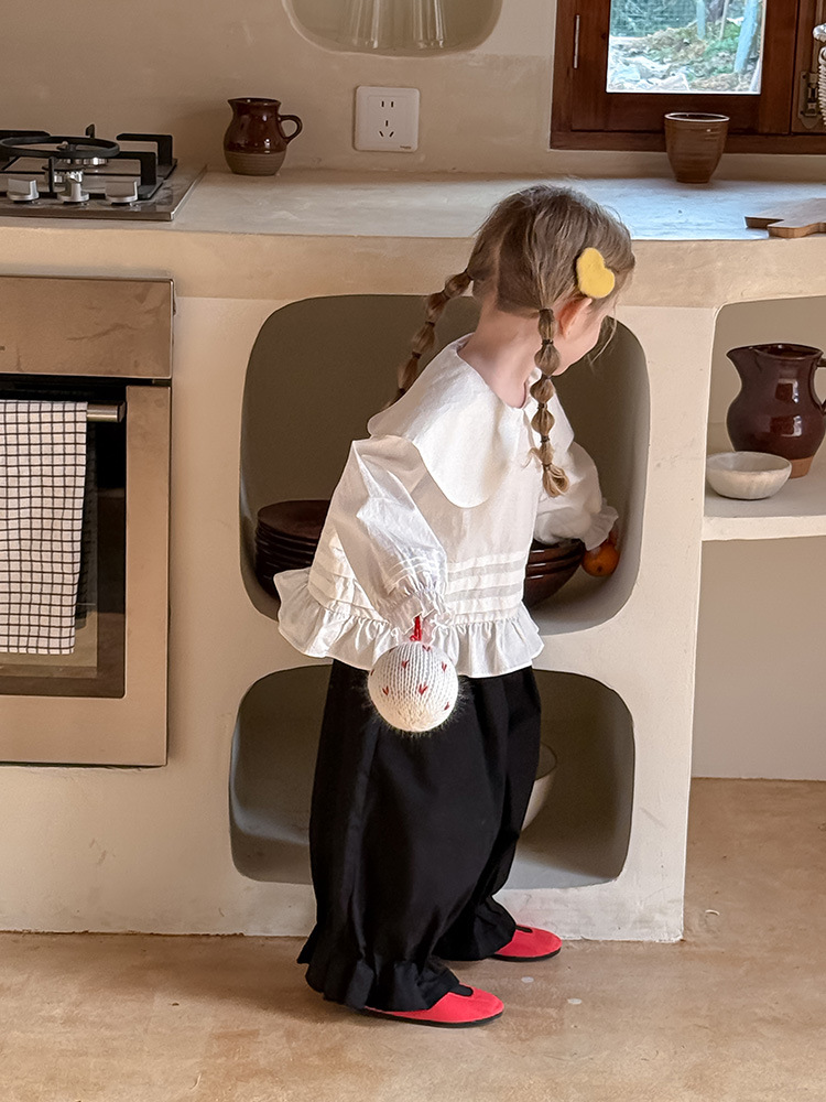 여자 흑백 옷깃 셔츠 2021 봄, 여름 새로운 한국 스타일 어린이 레이스 긴팔 셔츠 아동상의