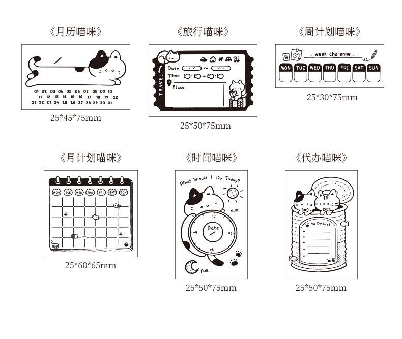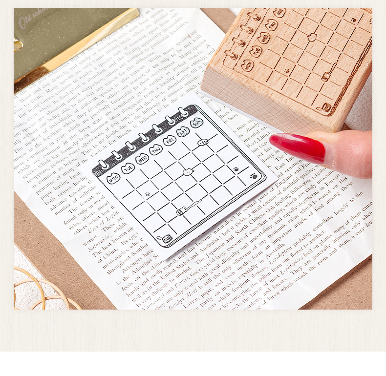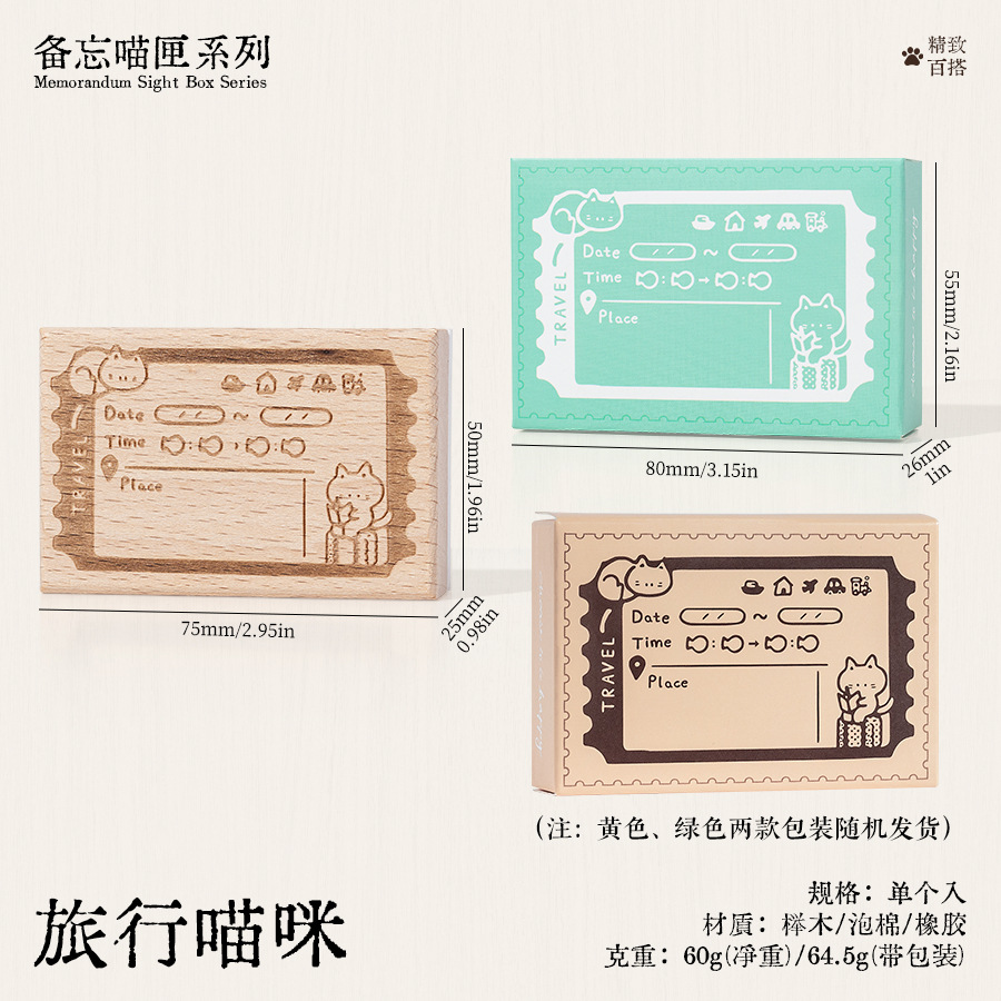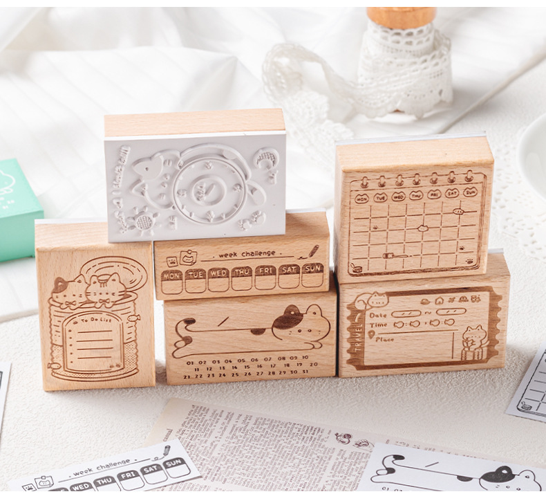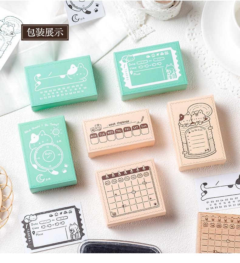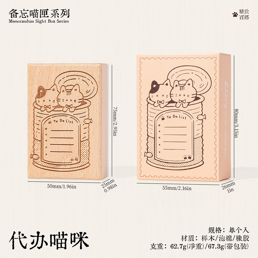 메모 고양이 상자 나무 손 계정 스탬프 레트로 고양이 일정 계획 너도밤 나무 스탬프 매일 메모 스탬프