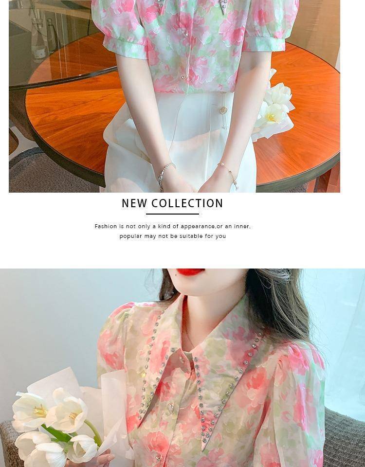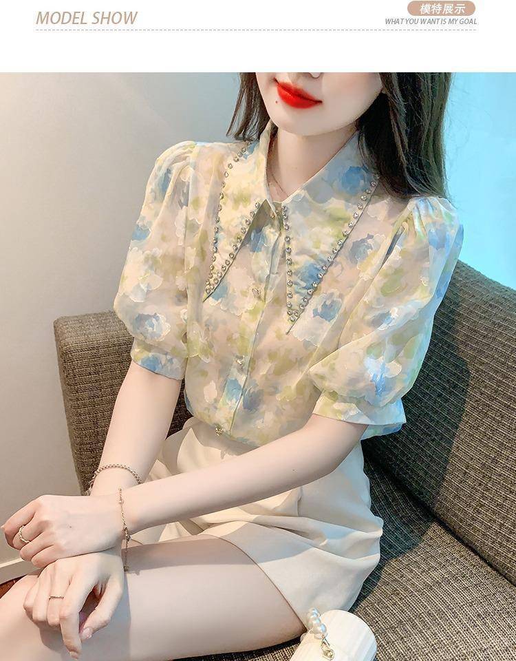 여름 반소매 쉬폰 셔츠 세련된 여성 여름 2024 새로운 프랑스 달콤한 꽃 무늬 디자인 감각스토어 가기