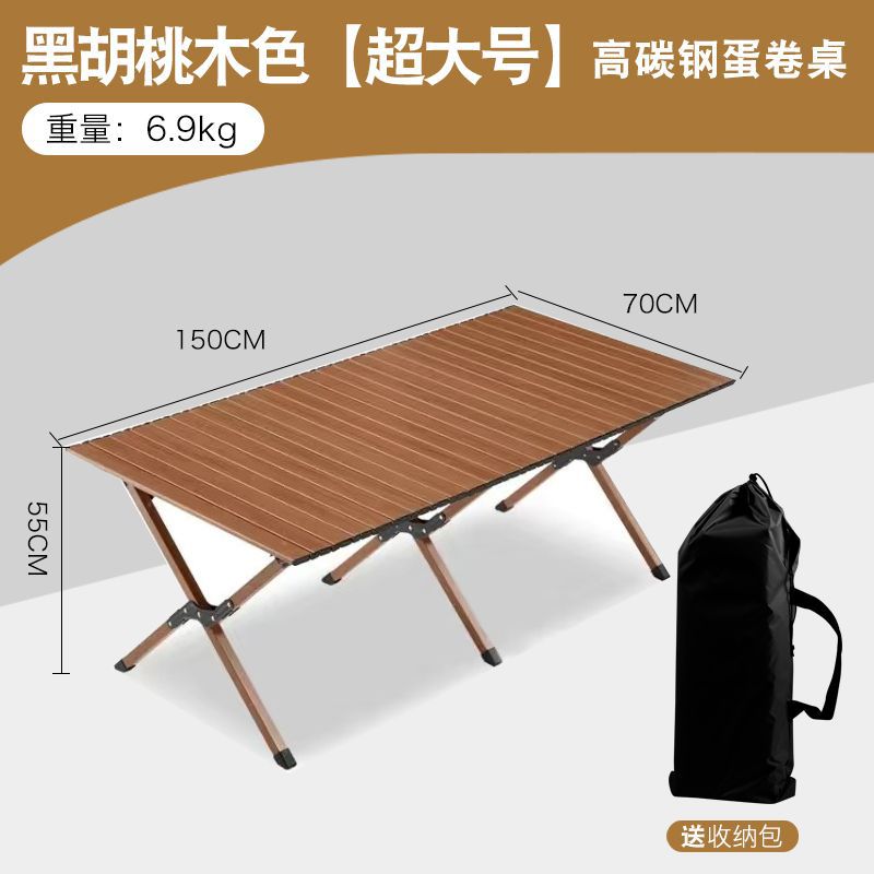 • 고탄소강 [블랙 월넛 컬러] 크로스 스타일 - 150CM 넓어진 에그롤 테이블 [무료 보관 가방]