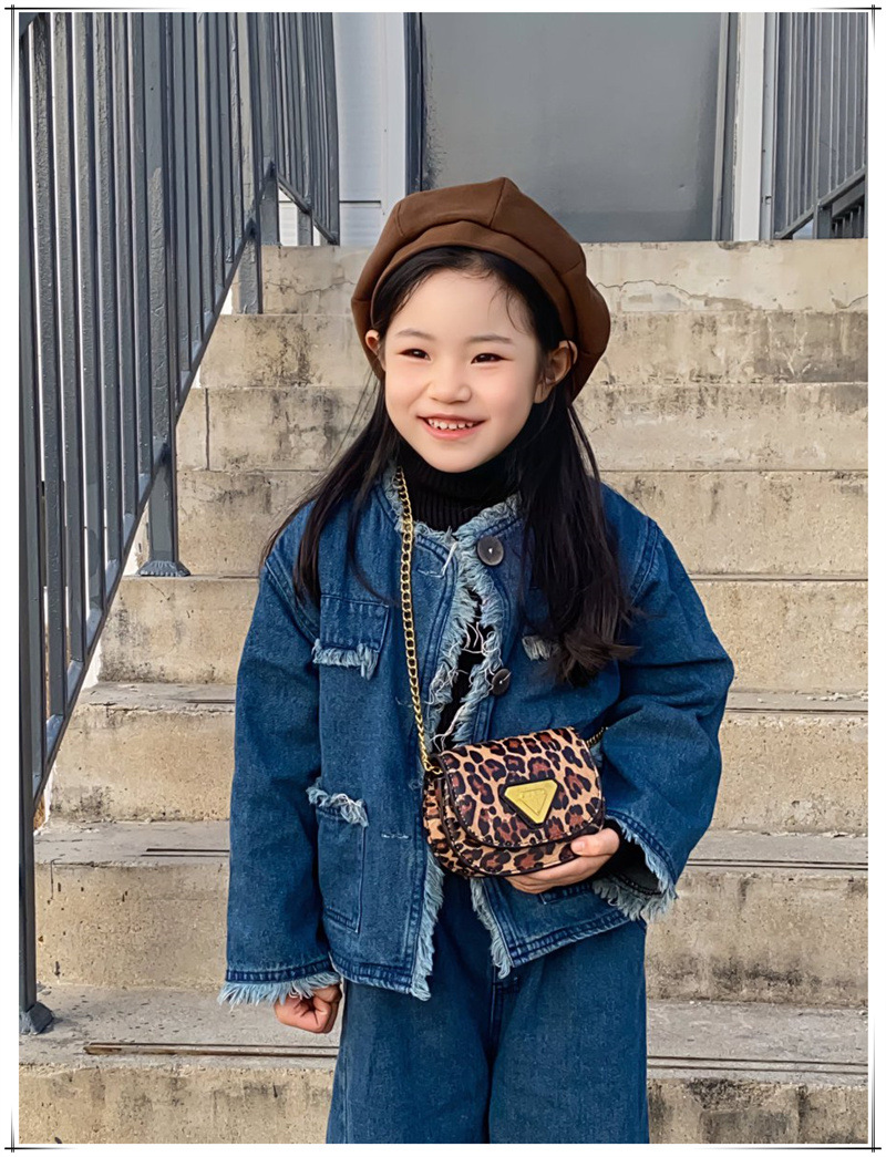 소녀의 체인 작은 가방 트렌디 쿨 올 매치 레오파드 무늬 미니 변경 헤드셋 입 레드 가방 어린이 액세서리 크로스 바디 백