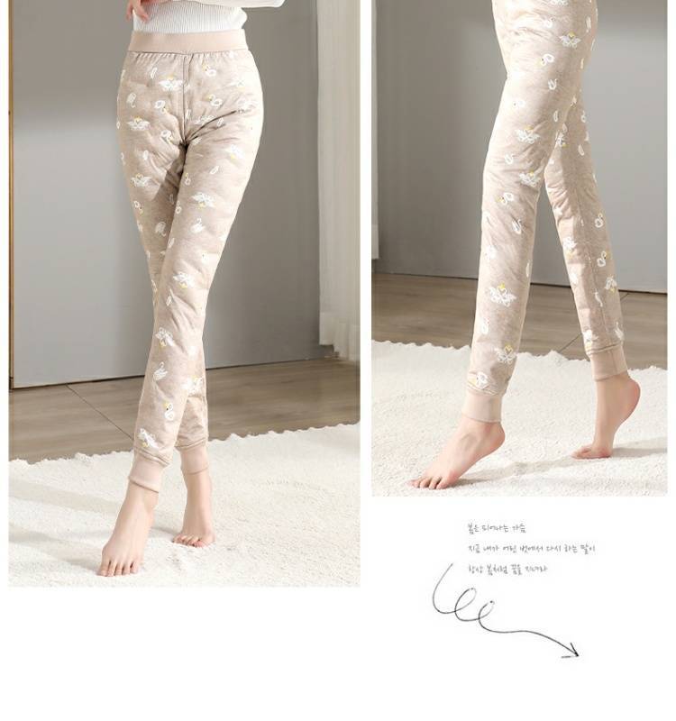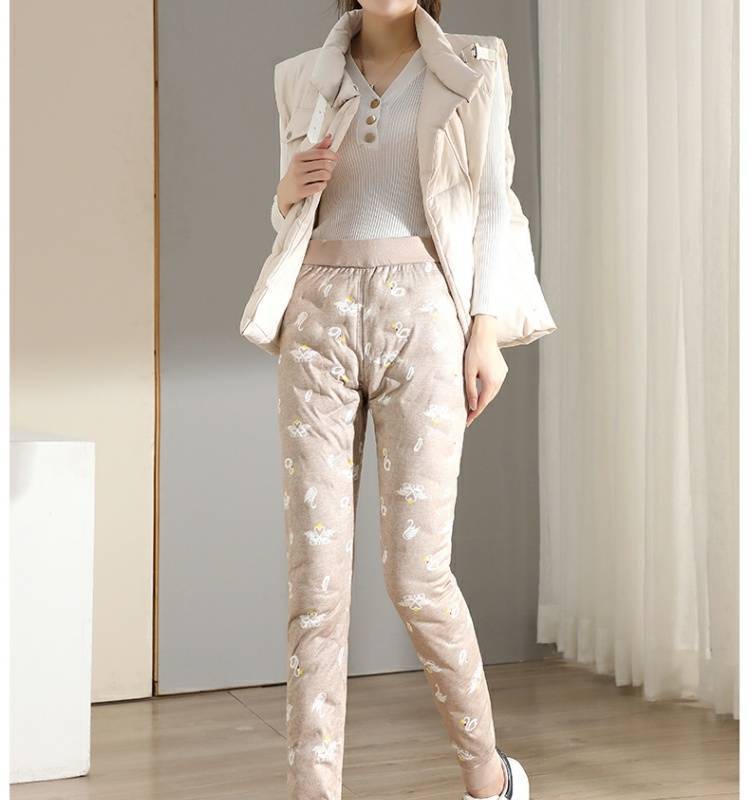 내부 다운 바지 여성 엑스트라 롱 겨울 2024 새로운 기모 두꺼운 높은 허리 키 경량 따뜻한 면 바지