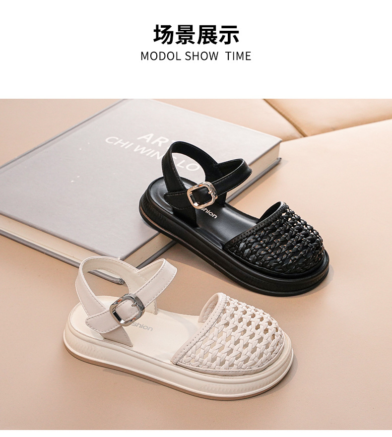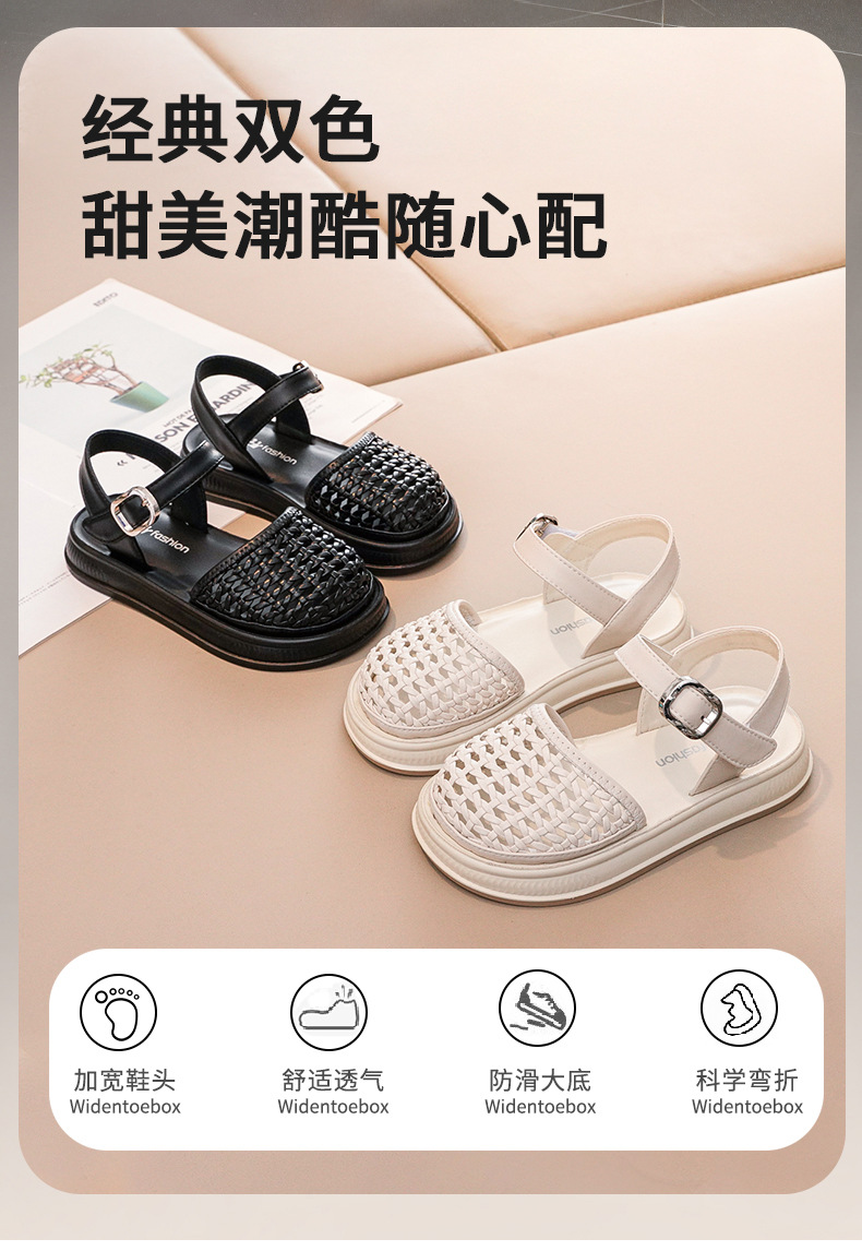 2025 년 여름 새로운 어린이 바오 터우 샌들 소녀 짠 빈 공주 신발 킥 방지 부드러운 밑창 소녀 비치 슈즈스토어 가기