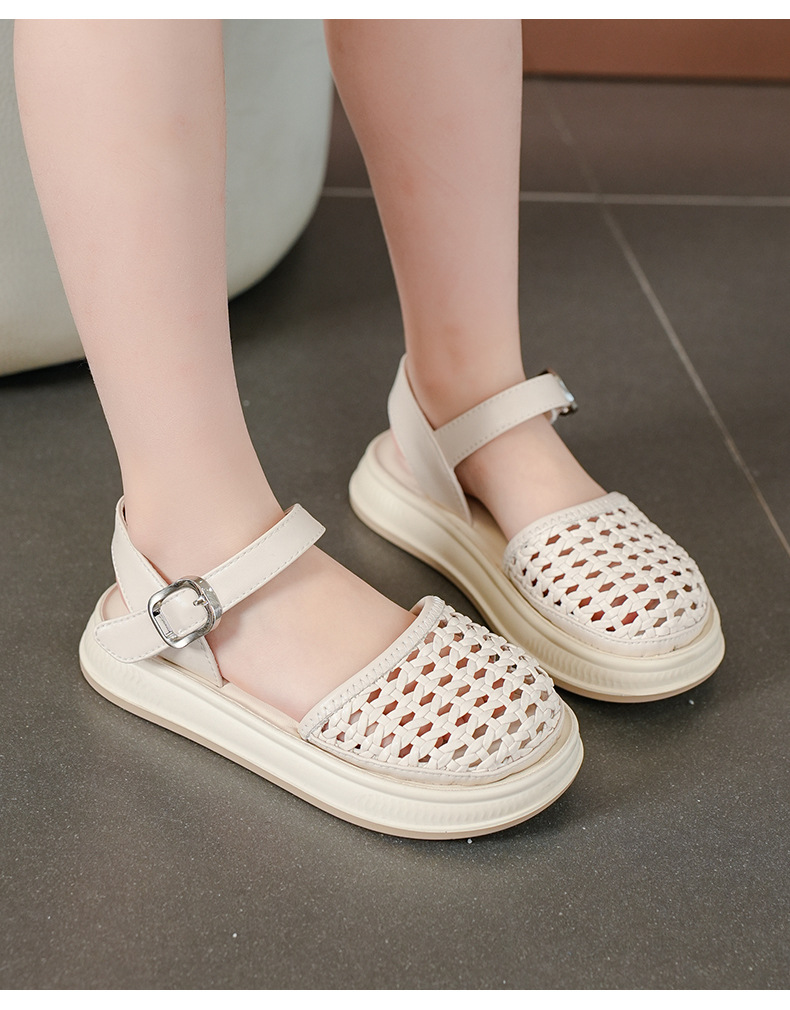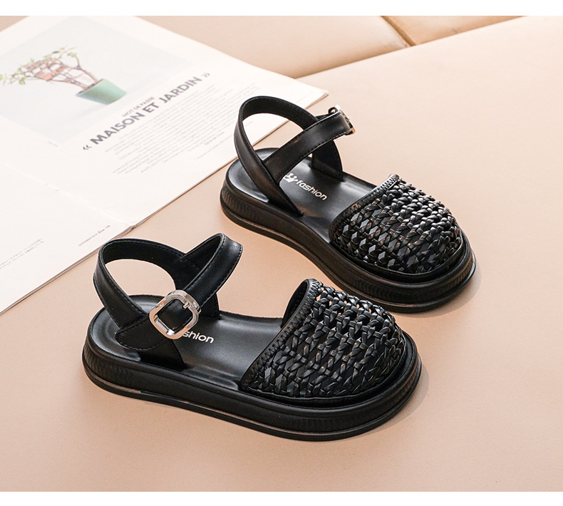 2025 년 여름 새로운 어린이 바오 터우 샌들 소녀 짠 빈 공주 신발 킥 방지 부드러운 밑창 소녀 비치 슈즈