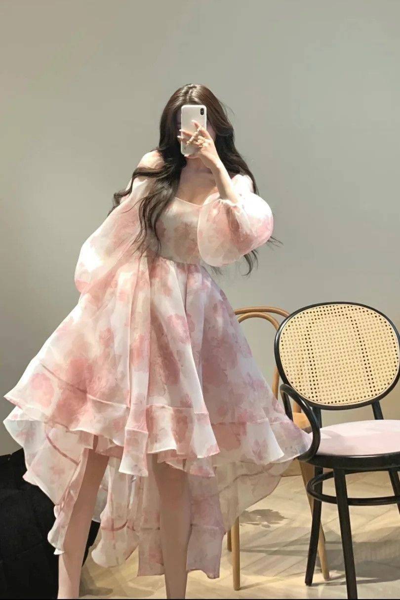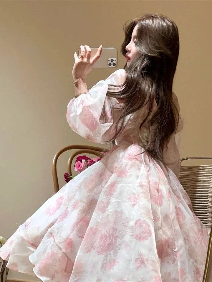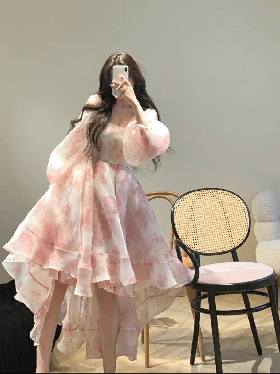 달콤한 탈출 공주 요정 생일 원피스 퍼프 소매 타이트한 허리 원피스 해변 재단사 원피스스토어 가기