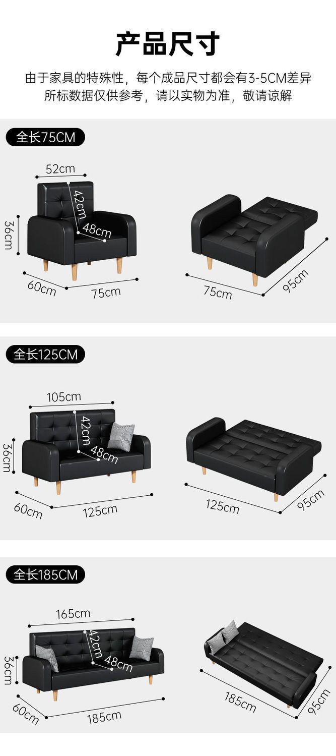임대 소파 침대 가죽 PU 소파 작은 아파트 접이식 소파 침대 이중 사용 모조 가죽 게으른 아파트 거실스토어 가기