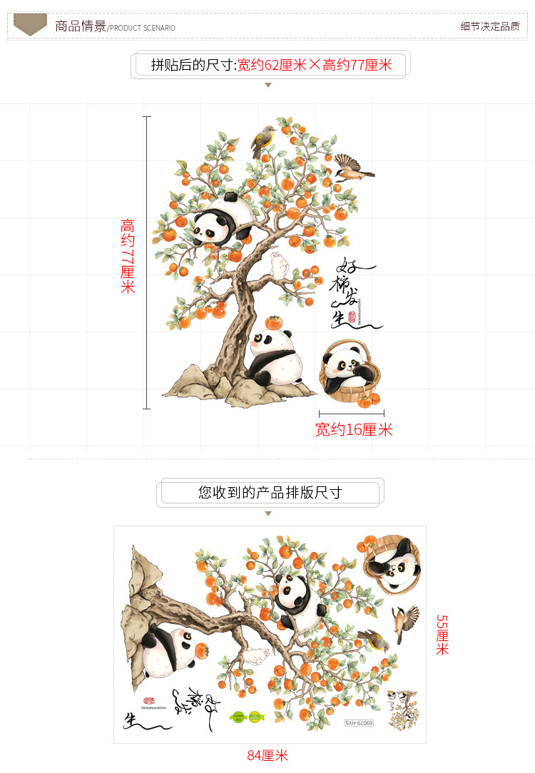 ZDB69079 중국 스타일 감 나무 길조 배경 벽 장식 스티커 거실 홈 분위기 벽 스티커스토어 가기