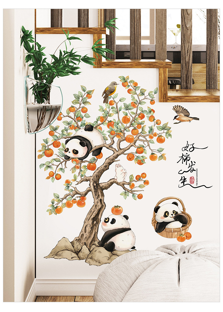 ZDB69079 중국 스타일 감 나무 길조 배경 벽 장식 스티커 거실 홈 분위기 벽 스티커