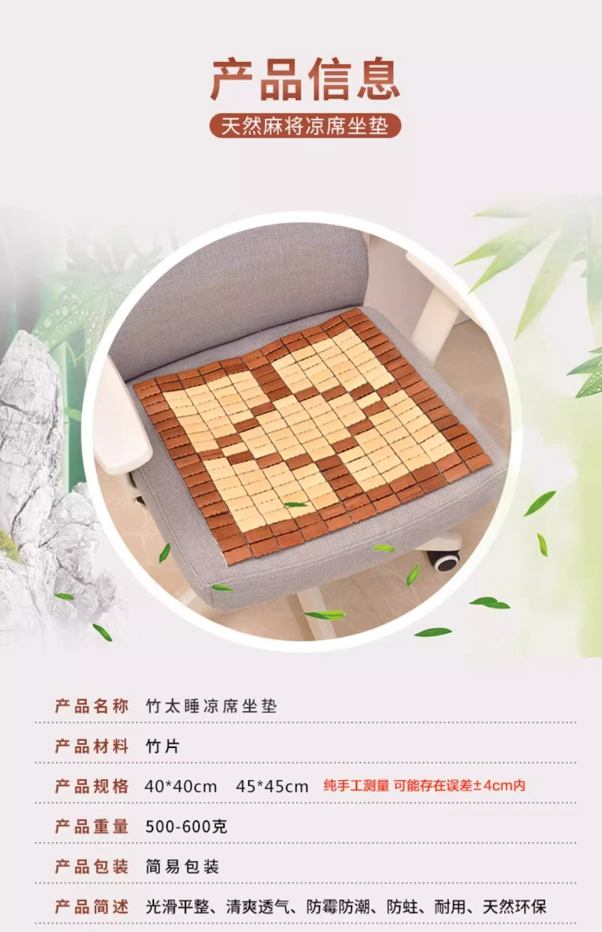 여름 마작 매트 쿠션 지방 쿠션 사무실 의자 통기성 대나무 쿨 쿠션 자동차 쿠션 학생 여름 의자 쿠션스토어 가기