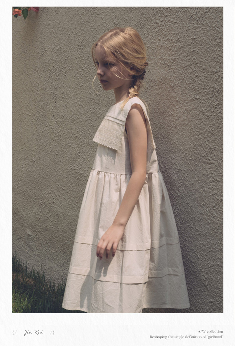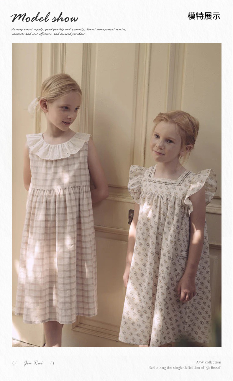 재고 어린이 원피스 2025 봄과 여름 LOU 새로운 민소매 세척 물 면화 소녀 원피스 화이트 원피스스토어 가기