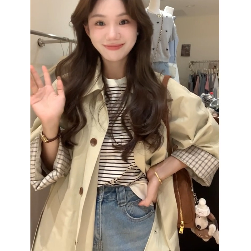 윈드브레이커 코트 여자 2025 년 가을 · 겨울 새 초가을 캐주얼 한국식 헵번 스타일 하이 엔드 중장 코트스토어 가기
