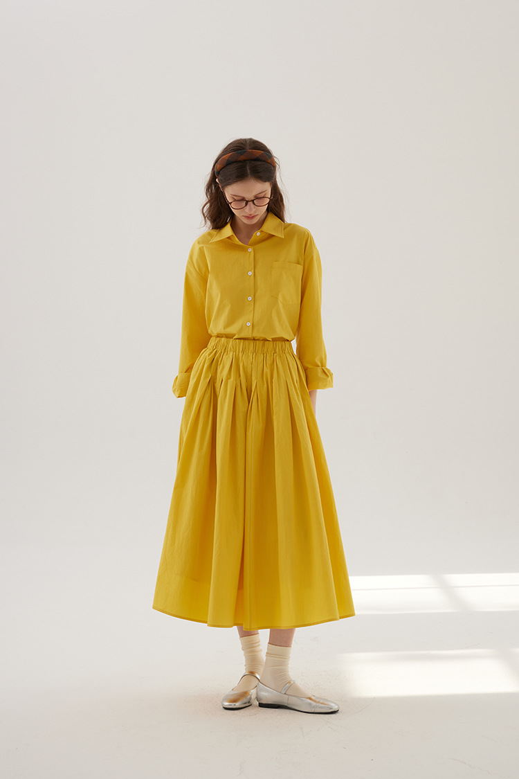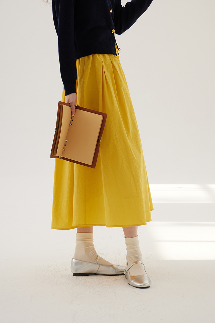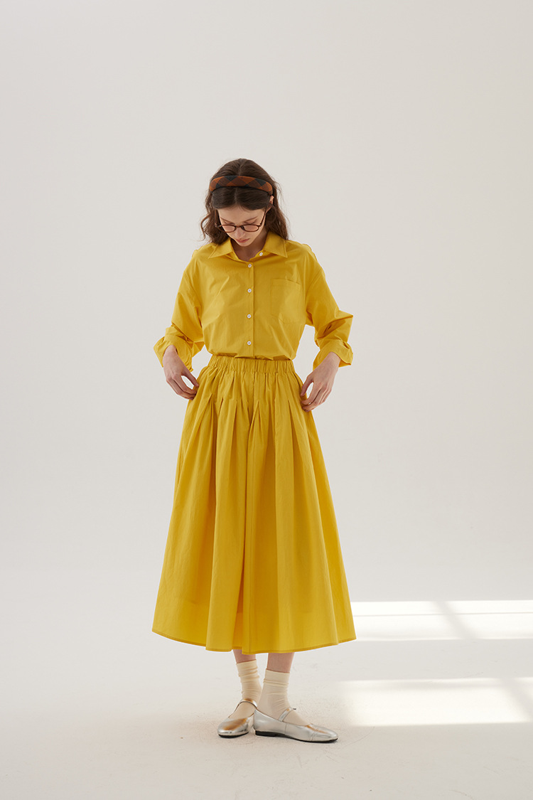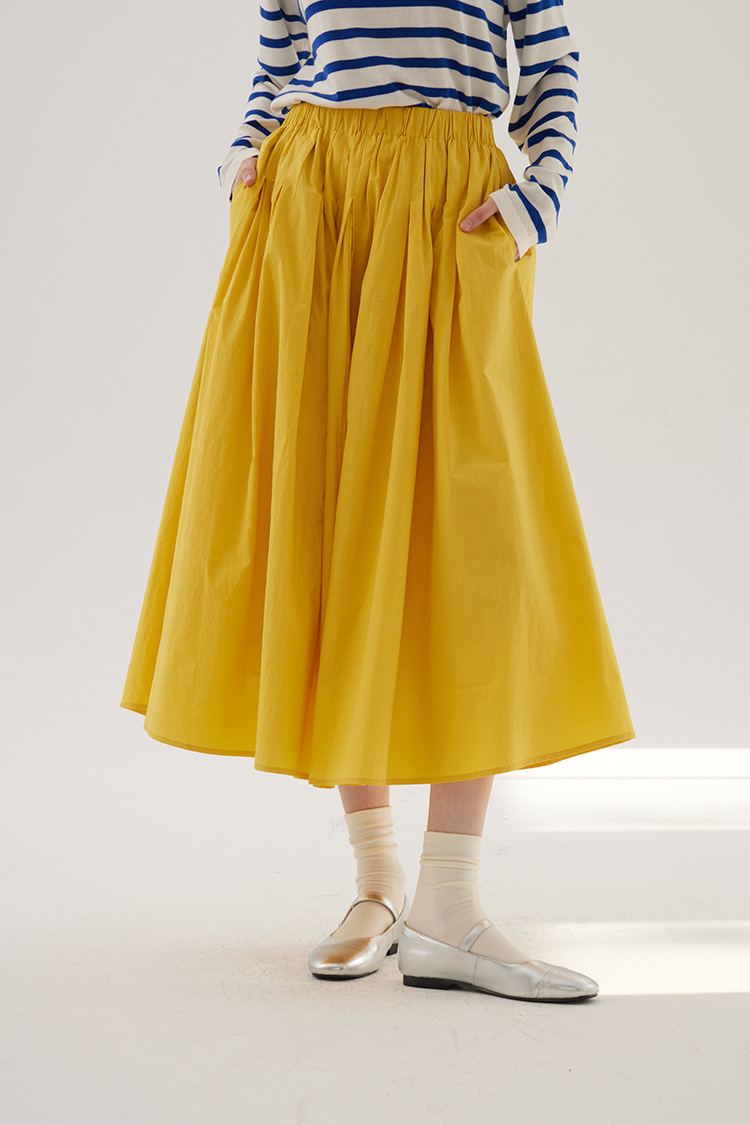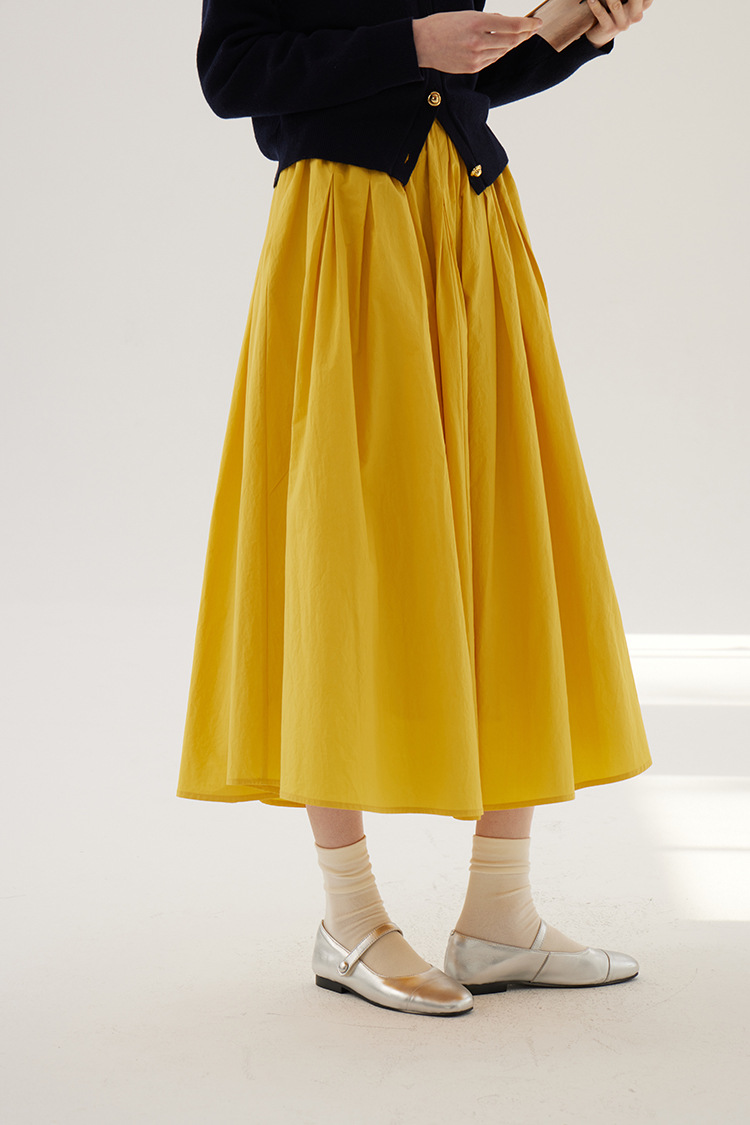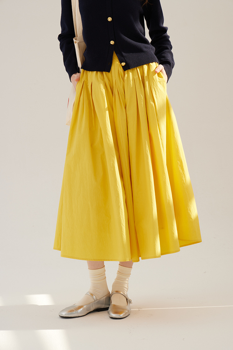 Sullenger 25 가을 밝은 노란색 신강 긴 스테이플 코튼 탄성 주름 대형 스윙 우산 스커트