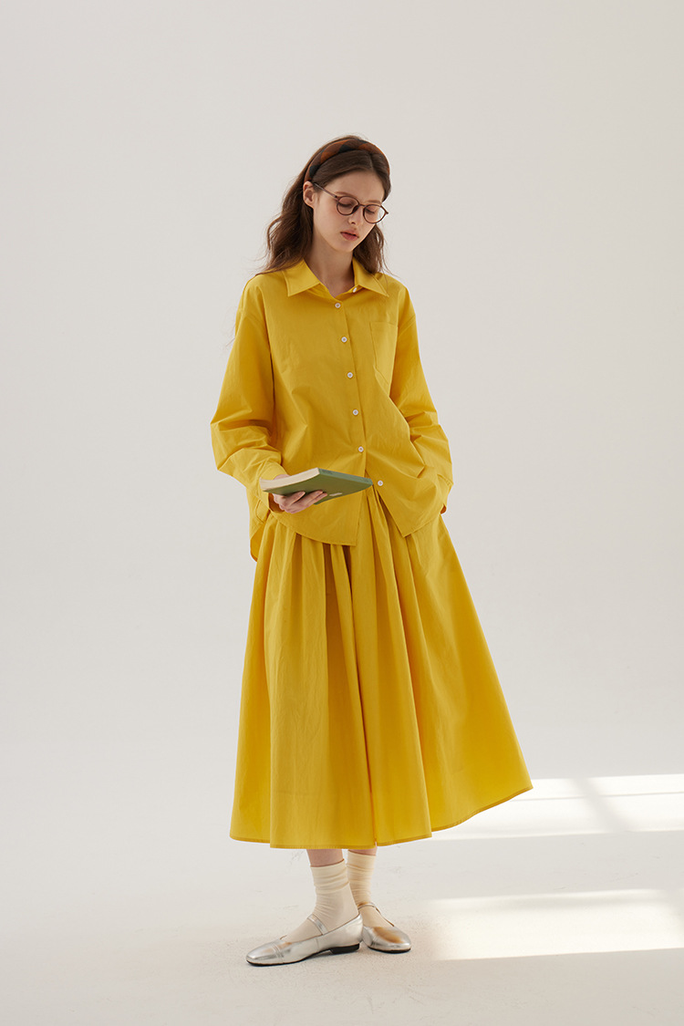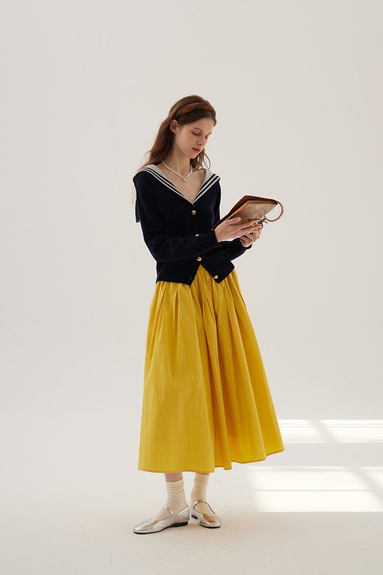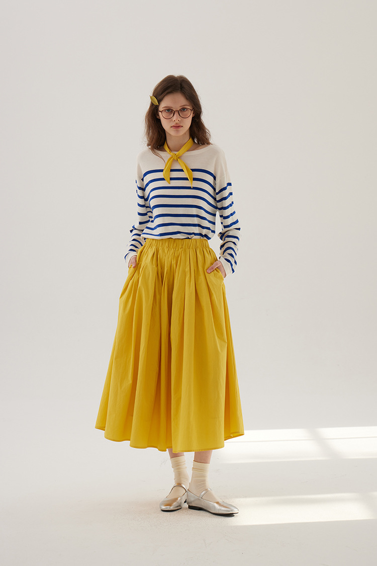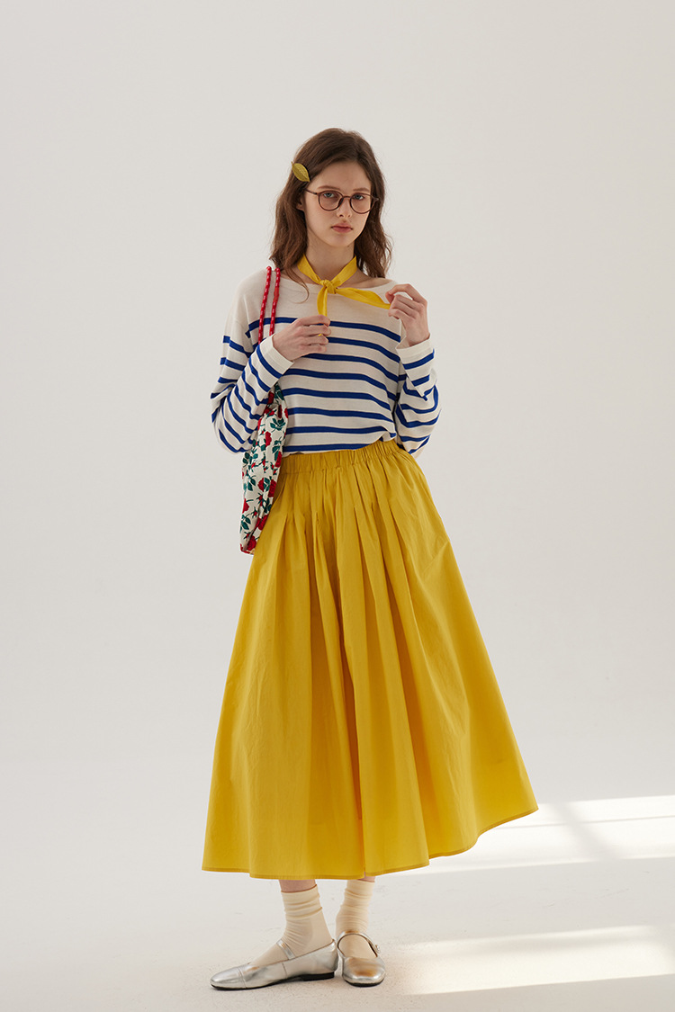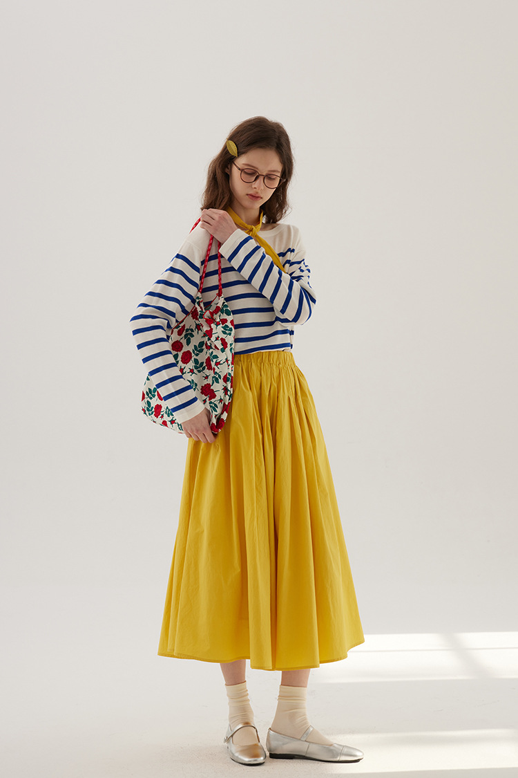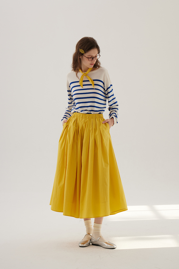 Sullenger 25 가을 밝은 노란색 신강 긴 스테이플 코튼 탄성 주름 대형 스윙 우산 스커트