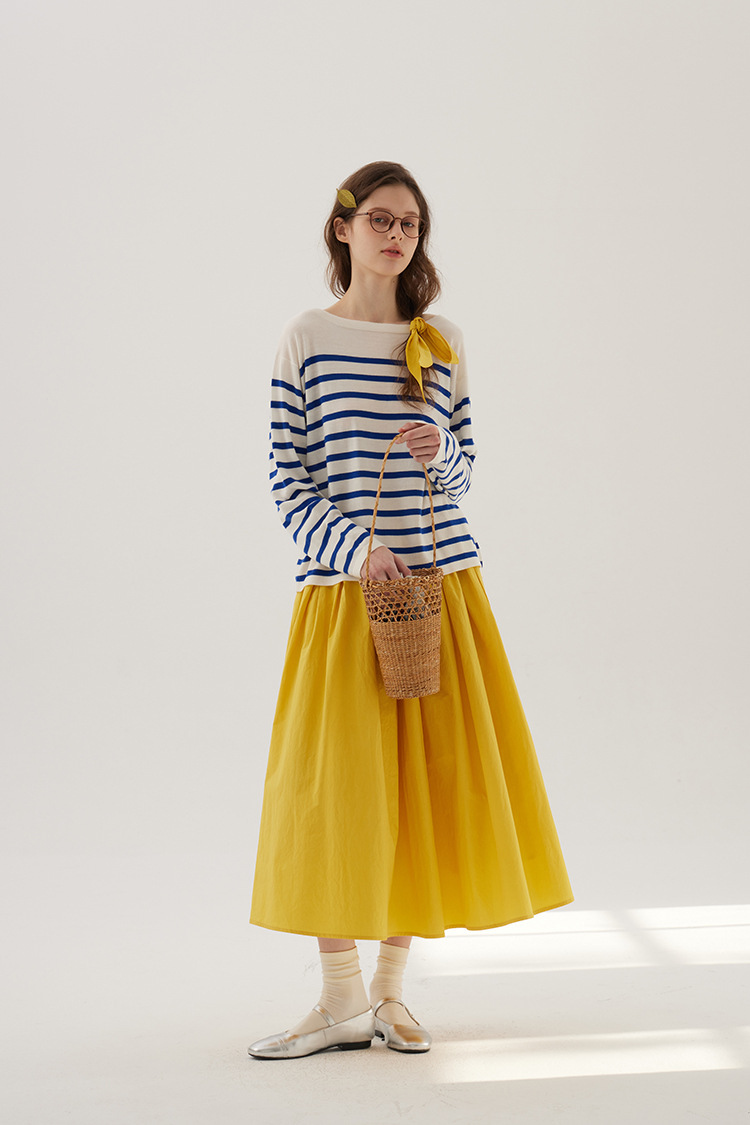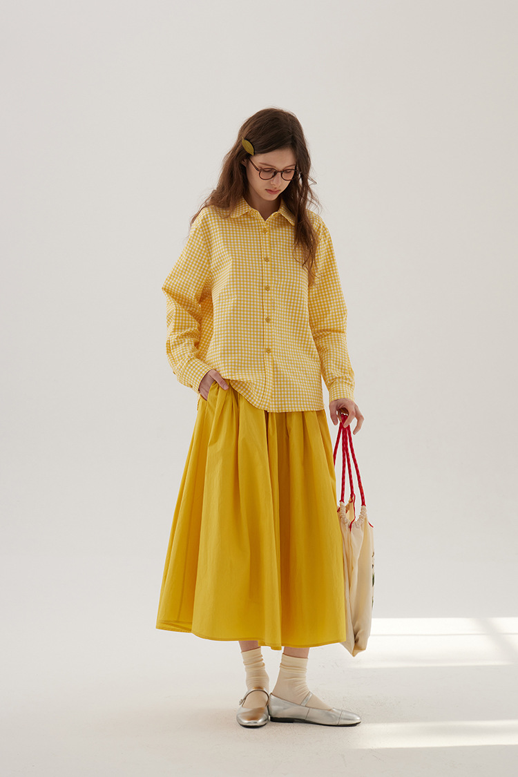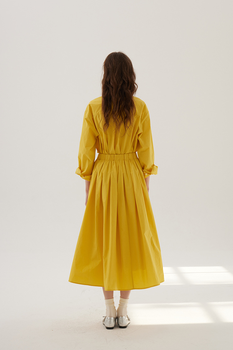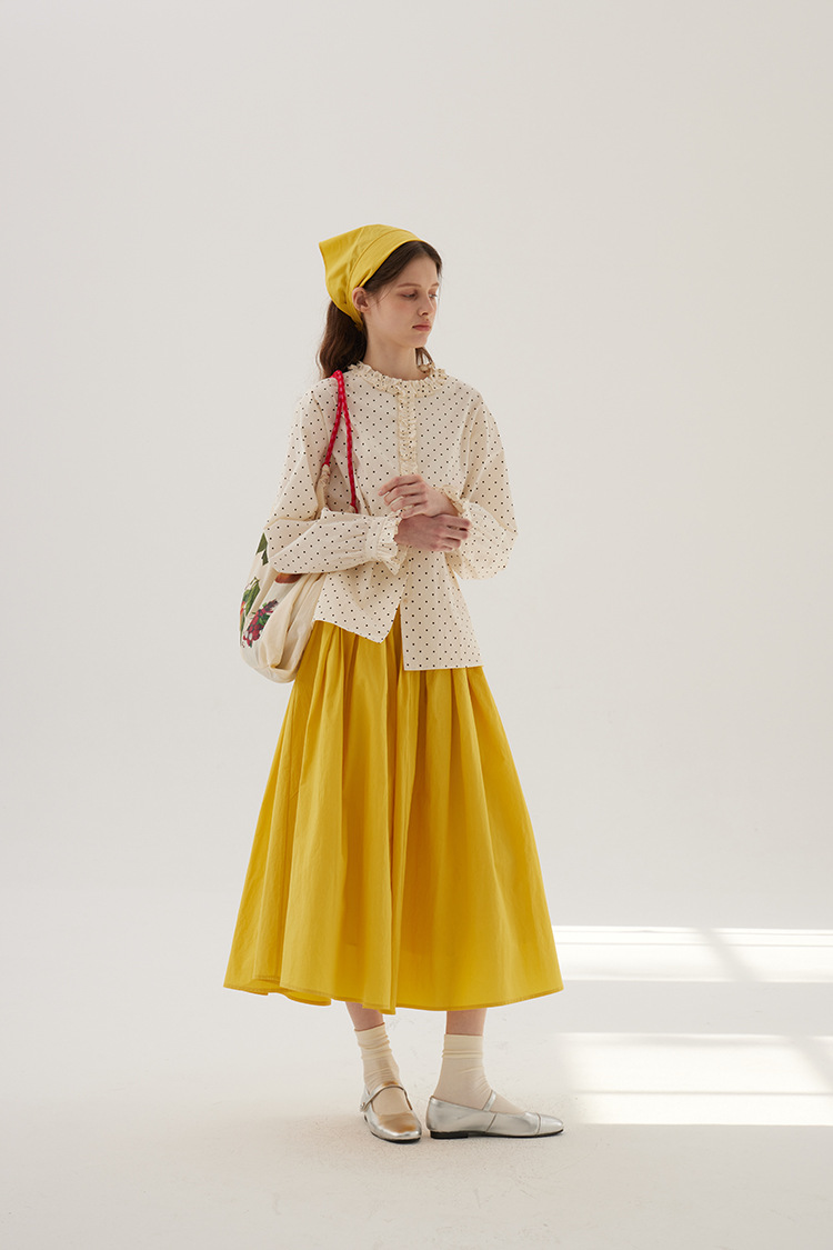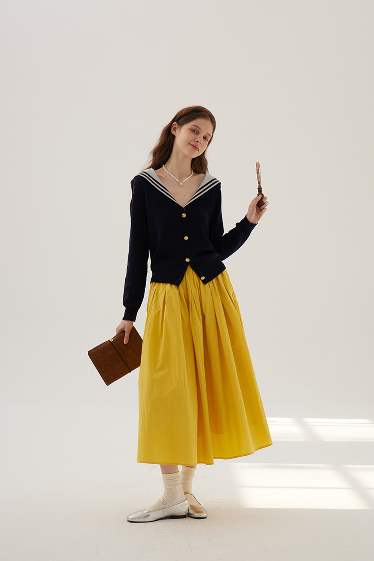 Sullenger 25 가을 밝은 노란색 신강 긴 스테이플 코튼 탄성 주름 대형 스윙 우산 스커트